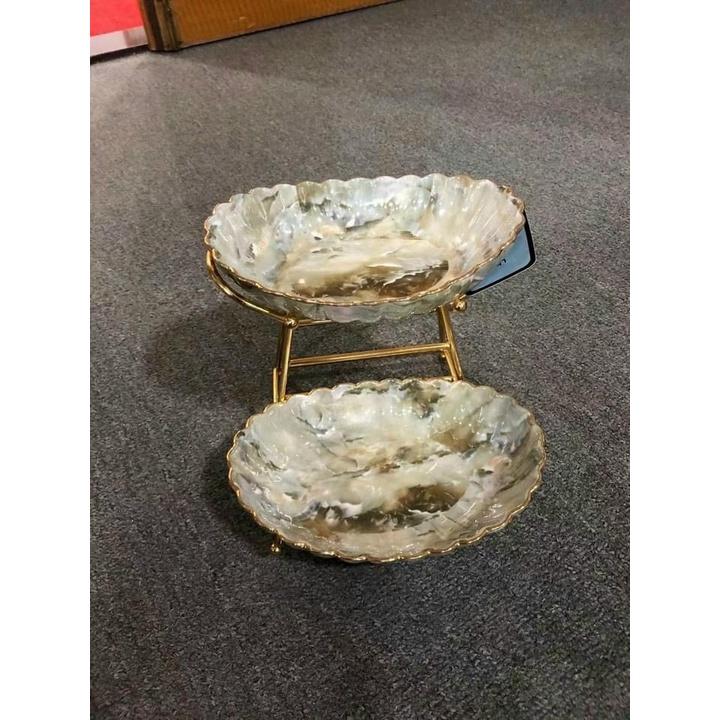 Khay đựng hoa quả, bánh kẹo, mứt Tết 2 tầng, 3 tầng bằng gốm sứ kèm đế kim loại mạ vàng cao cấp.