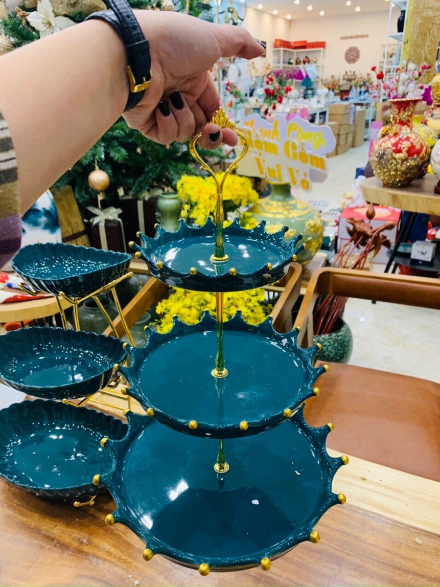 Khay đựng bánh kẹo 3 tầng dành cho phòng khách gia đình sử dụng nhiều lần, vô cùng thích hợp để bánh kẹo tết, trang trí bàn tiệc, teabreak, Vừa lịch sự vừa đẹp mắt