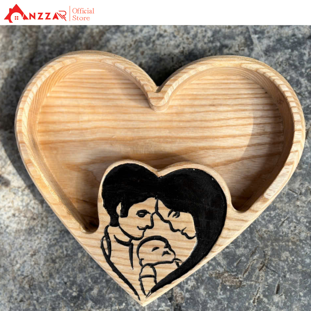 Mua tại TiktokKhay gỗ trái tim khắc hoa Anzzar – Gỗ tần bì & óc chó nguyên khối – Khay decor bàn ăn / quà tặng THÔNG SỐ SẢN PHẨM Kích thước: 26 x 20 x 3.5