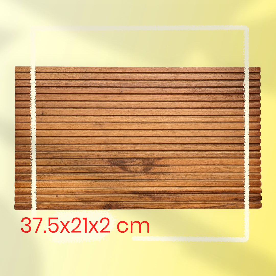 Khay gỗ xẻ rãnh để bánh mỳ, thực phẩm và làm thớt IBIE có nhiều kiểu dáng, được sản xuất từ những tấm gỗ keo (gỗ tràm - acacia) chọn lọc, xử lý theo quy trình công nghệ hiện đại để loại bỏ hoàn toàn tạp chất, vi khuẩn và dư lượng hóa chất độc hại. Thiết kế xinh xắn, đa dụng, chiếc khay này được dùng để làm thớt hoặc trang trí đồ ăn như salad, bít-tết, pizza...thêm bắt mắt. Vân gỗ tự nhiên với các thớ màu tương phản tạo nên vẻ đẹp độc bản riêng có của mỗi sản phẩm. Vì vậy nó còn rất phù hợp để làm quà tặng tân gia, sinh nhật... Ẩm thực không chỉ phục vụ nhu cầu cơ bản, nó còn là một nghệ thuật. Sự kết hợp khéo léo giữa nguyên liệu, kỹ thuật nấu nướng và trình bày món ăn sẽ mang lại những giây phút thư giãn, cảm xúc thăng hoa cho cả người làm và người thưởng thức. Với khay thớt gỗ IBIE Decor, người tiêu dùng sẽ còn yên tâm hơn vì chất lượng và sự an toàn của sản phẩm. Ngoài phục vụ nhu cầu thị trường trong nước, các sản phẩm của IBIE Decor còn được xuất khẩu và bán rộng rãi trên các sàn TMĐT quốc tế như Amazon, Ebay, Etsy... Ứng dụng thực tế: Tất cả sản phẩm khay thớt gỗ của IBIE Decor đáp ứng các yêu cầu luật định liên quan về FSC (Chứng nhận bảo vệ rừng), FCM (Chứng nhận sản phẩm tiếp xúc với thực phẩm của Châu Âu) và CPSIA (Tuân thủ Đạo luật cải thiện an toàn sản phẩm tiêu dùng của Mỹ). Giới thiệu chất liệu: Là loại gỗ cứng phát triển nhanh nhất thế giới, cây keo (tràm - acacia) là sự lựa chọn thông minh và bền vững. Cực kỳ cứng chắc, loại gỗ giàu chất dầu tự nhiên này có thể sử dụng lâu dài, bền bỉ. Các sản phẩm làm ra chỉ cần lau dầu gốc tự nhiên hoặc sơn an toàn với thực phẩm để giữ nguyên vẻ đẹp tương phản của gỗ. Cây keo có nguồn gốc từ Châu Úc, hiện cũng được trồng phổ biến ở Châu Á, các quần đảo Thái Bình Dương, Châu Phi và một phần Châu Mỹ. Về Khay thớt gỗ IBIE Decor: Gỗ keo (gỗ tràm) là loại gỗ lý tưởng để làm đồ gia dụng mỹ nghệ nhờ độ tương phản đẹp mắt giữa các thớ gỗ và có độ cứng hoàn hảo. Chúng tôi chỉ sử dụng gỗ có nguồn gốc hợp pháp và đủ tuổi khai thác. Các sản phẩm làm từ gỗ keo không chỉ có tính thẩm mỹ cao mà còn đáp ứng nhu cầu sử dụng thực tiễn hàng ngày. Vì thế, chúng rất được ưa chuộng bởi các bà nội trợ và các nhà đầu bếp trên khắp thế giới. Các loại khay thớt gỗ nên được rửa sạch và để khô ngay sau khi sử dụng. Tránh ngâm nước hoặc để trong môi trường ẩm ướt có thể khiến chúng bị cong vênh. Thường xuyên lau dầu để bảo quản lâu dài.