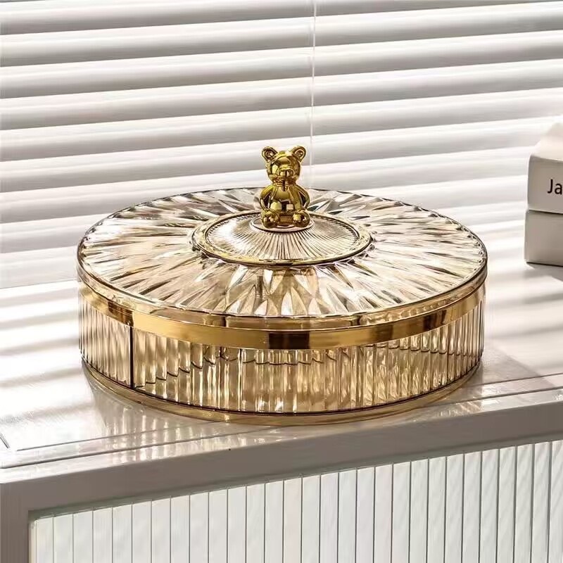 Khay Mứt Tết Pha Lê Trong Suốt, Xoay 360 Độ Cao Cấp Phong Cách Châu Âu Trang Trí Ngày Tết - Hộp Đựng Bánh Kẹo - Hàng Loại 1 - Chính Hãng MINIIN Thủy tinh