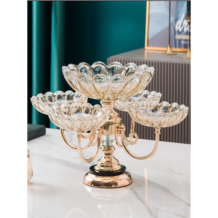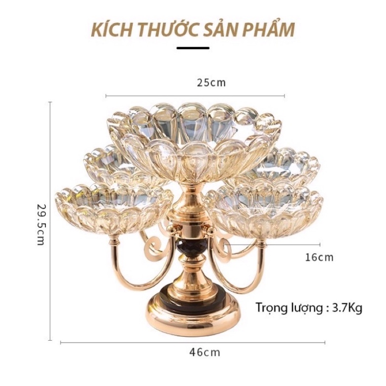 Đĩa Thuỷ Tinh Đựng Hoa Quả, Khay Thuỷ Tinh Pha Lê Đựng Hoa Quả Sang Trọng - KHAY MỨT Chân Bồng Pha Lê Mạ Vàng Phong Cách Royal Sang Trọng - HÀNG CHÍNH HÃNG MINIIN
