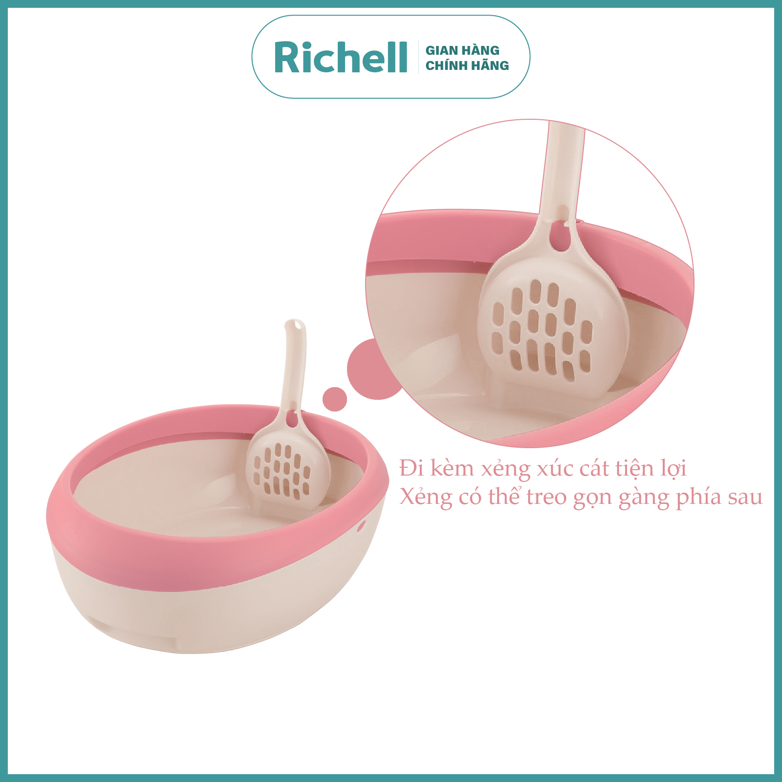 2) Đi kèm xẻng xúc cát tiện lợi. Xẻng có thể treo gọn gàng phía sau khay.