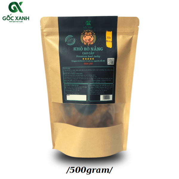 Mua tại TiktokTừ những chú bò chăn thả tự nhiên trên cao nguyên Xanh Gia Lai Tự do đi lại, ăn nguồn cỏ Sạch ưa thích giàu dưỡng chất Kali riêng có, làm nên một chất thịt dai ngon, sạch thuần tự nhiên Từ cái nắng, cái gió độc đáo nơi “Chảo lửa” cao nguyên, hình thành nên chất lượng bò khác biệt Từ công thức tẩm ướp, pha trộn gia vị gia truyền từ bao đời hơn 25 năm Làm nên một Khô bò tỏa mùi thơm ngào ngạt, thịt mềm đều, dai ngon thượng hạng, sạch thuần thiên nhiên Sản phẩm đạt chất lượng OCOP 4 Sao Gia Lai Cơ sở sản xuất đạt tiêu chuẩn an toàn vệ sinh thực phẩm