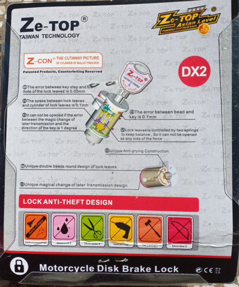 Khóa đĩa chống trộm xe máy có lưỡi gà Z-con DX6-1