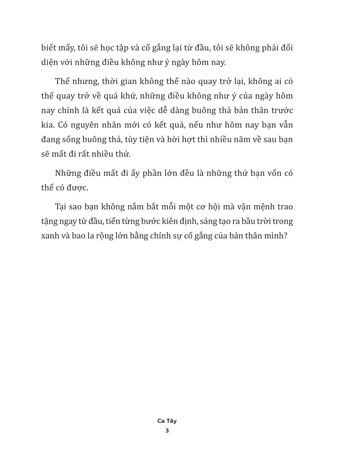 Không ai huênh hoang vài câu là có thể thành công ngay được. Cuộc sống vốn có những thử thách bất ngờ, nếu mệt thì nghỉ, sai thì làm lại, tuyệt đối đừng bỏ cuộc vì sự hài lòng dễ dãi. Buông bỏ chính m.ình trong lời oán than thì dễ, nhưng để cuộc đời buông tha m.ình mới khó.