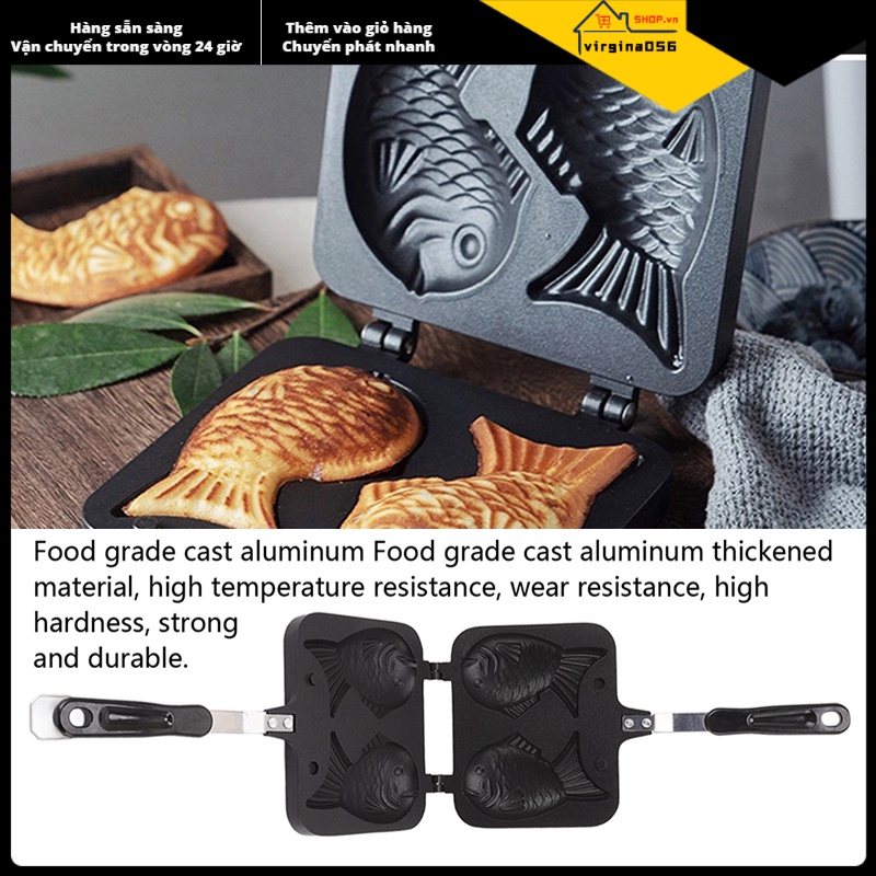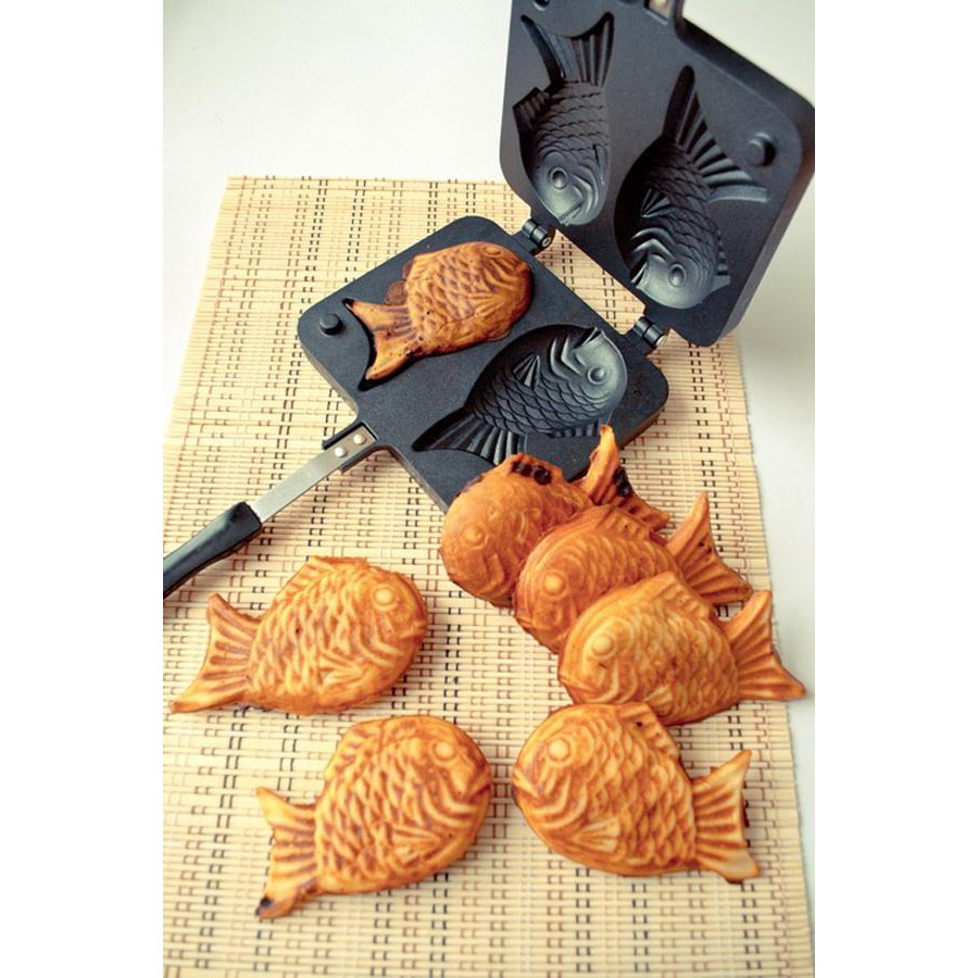 Khuôn bánh cá Taiyaki được thiết kế theo phong cách của nhật dùng để nướng bánh hình cá tren bếp gas, bếp điện, bếp hồng ngoại. Khuông bánh cá Taiyaki được làm từ chất liệu gang dày dặn, tráng men chống dính chắc chắn đảm bảo an toàn vệ sinh khi sử dụng.