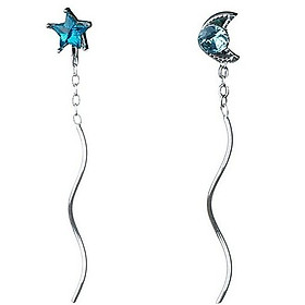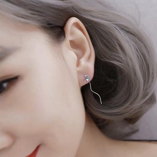 ✨Khuyên tai bạc 925 sao xanh thả xích độc đáo bắt mắt lung linh Dế Bạc - K5212