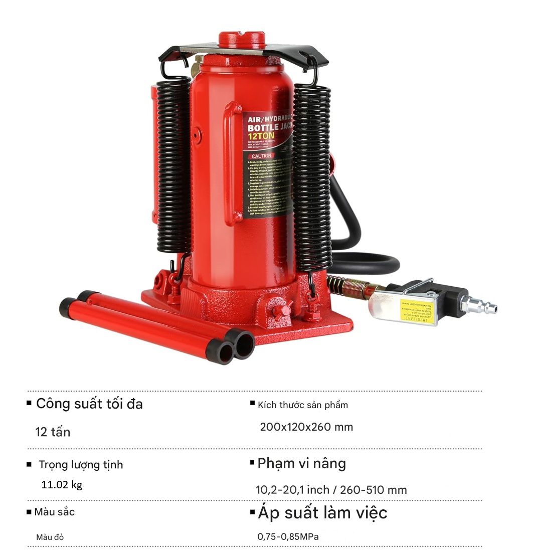 - Tải trọng nâng mạnh mẽ 12 tấn: Phù hợp với nhiều dòng xe tải, xe container, máy móc công nghiệp…