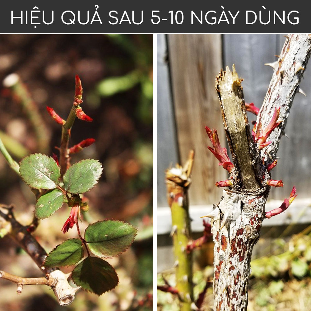 - Hỗ trợ bật mầm gốc cho cây hoa hồng, hoa mai, hoa lan và một số cây kiểng lá vô cùng hiệu quả. Với những mắt ngủ đã có sẵn cam kết bật mầm 100%, chỉ bôi duy nhất một lần và chờ kết quả.