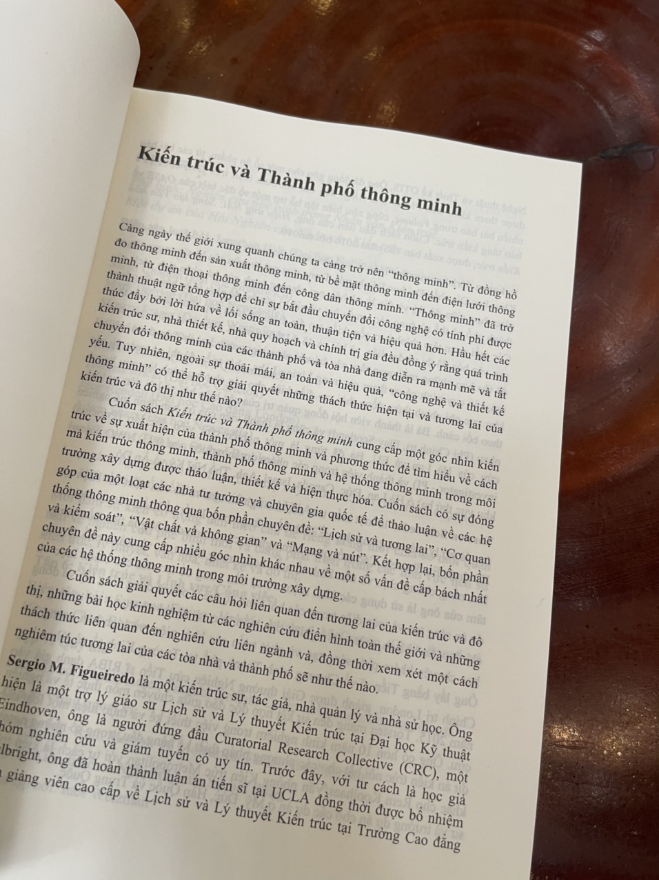 Cuốn sách Kiến trúc và Thành phố thông minh cung cấp một góc nhìn kiến trúc về sự xuất hiện của thành phố thông minh và phương thức để tìm hiểu về cách mà kiến trúc thông minh, thành phố thông minh và hệ thống thông minh trong môi trường xây dựng được thảo luận, thiết kế và hiện thực hóa. Cuốn sách có sự đóng góp của một loạt các nhà tư tưởng và chuyên gia quốc tế để thảo luận về các hệ thống thông minh thông qua bốn phần chuyên đề: “Lịch sử và tương lai”, “Cơ quan và kiểm soát”, “Vật chất và không gian” và “Mạng và nút”. Kết hợp lại, bốn phần chuyên đề này cung cấp nhiều góc nhìn khác nhau về một số vấn đề cấp bách nhất của các hệ thống thông minh trong môi trường xây dựng.