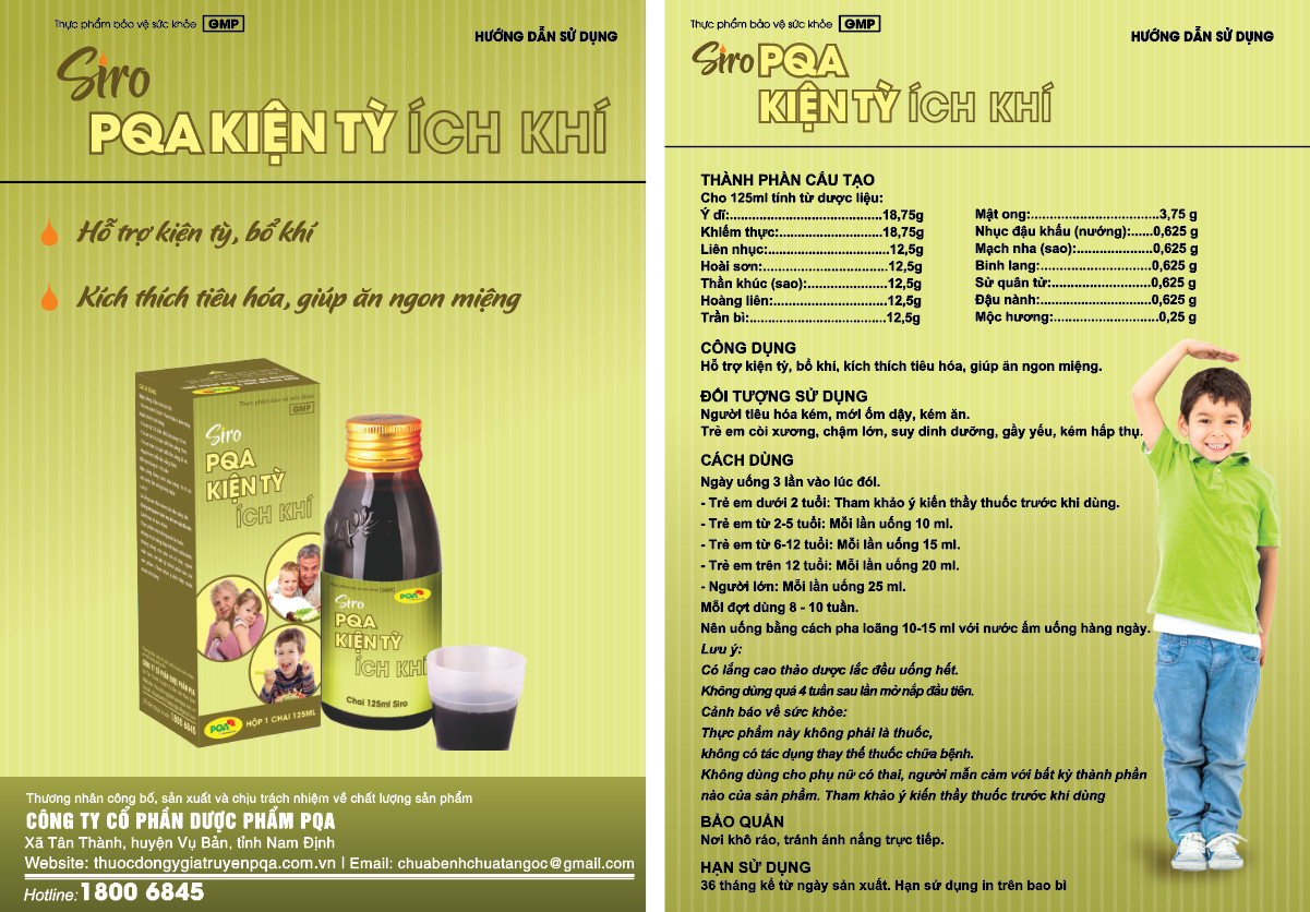 Kiện Tỳ Ích Khí PQA Hỗ Trợ Kích Thích Tiêu Hóa, Giúp Ăn Ngon Miệng Dùng Cho Trẻ Em Còi Xương Chậm Lớn Hộp 125ml THÔNG TIN SẢN PHẨM: - Xuất xứ: Việt Nam -