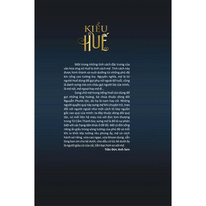 KIỂU HUẾ là tập biên khảo của TS. Trần Đức Anh Sơn, do Trần Đức Anh Sơn là một nhà sử học, nhà báo gốc Huế, hiện là Trưởng phòng Phòng Quản lý Khoa học