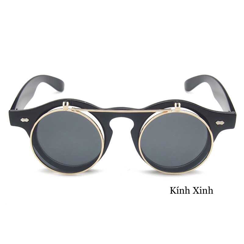 ✨Kính Râm 2 Lớp Mở Nắp Mắt Tròn Gọng Nhựa Chống Nắng Uv Cao Cấp