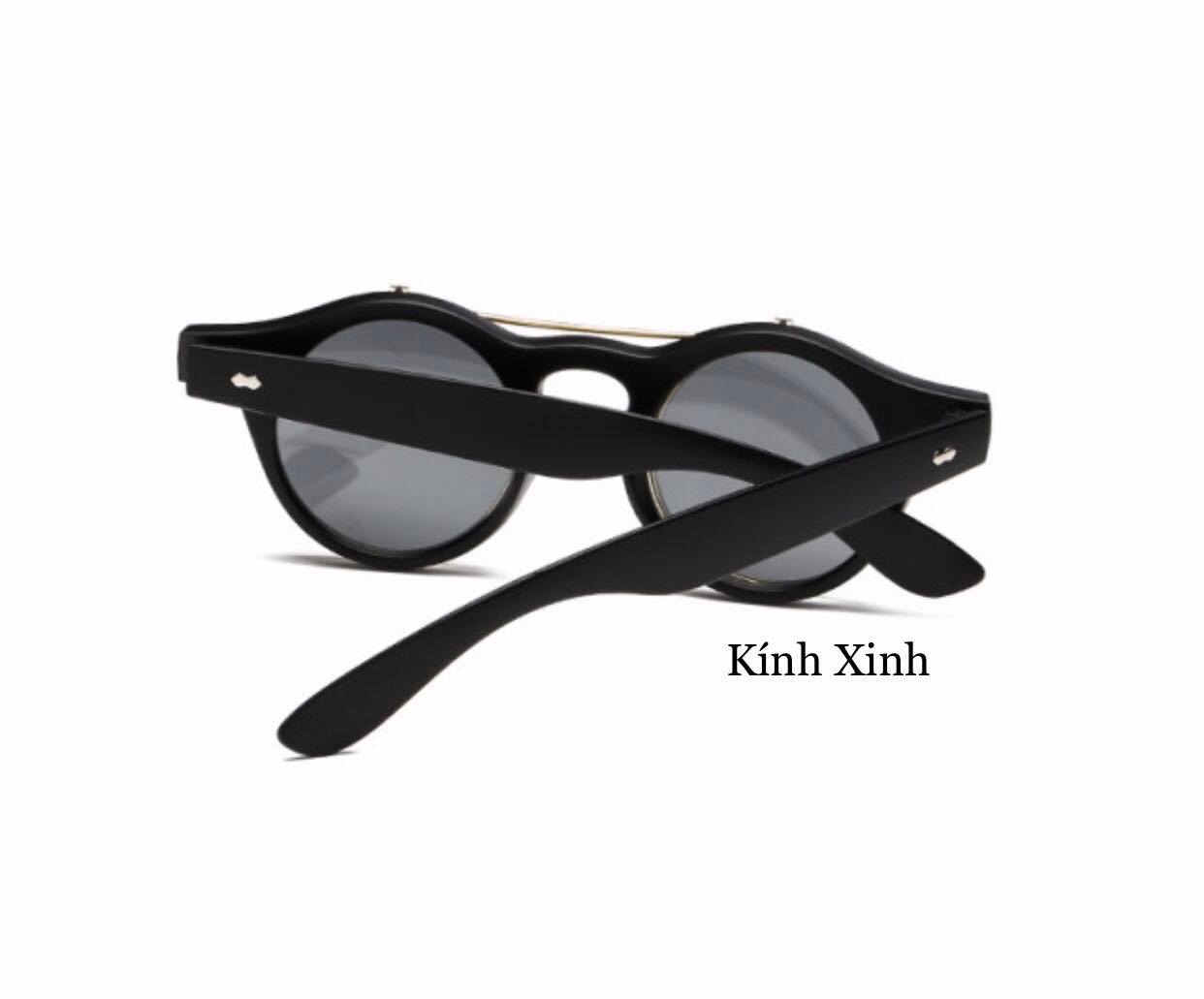 Kính râm Mắt Tròn Tròng Thủy Tinh Cao Cấp Gọng Kim Loại Chống Nắng UV Chất liệu: Gọng Kim loại mạ xi cao cấp, bền màu - Tròng Thủy Tinh Kim Cương Chống Vỡ Tròng