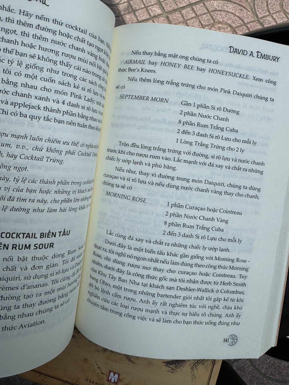 Tất tần tật về cocktail là cuốn sách mà David A. Embury đã đầu tư nhiều thời gian và công sức viết nên, mang giọng điệu hóm hỉnh và màu sắc cá nhân rõ rệt thể hiện kiến thức sâu rộng của ông trong lĩnh vực pha chế đồ uống có cồn. Tác giả mang đến cho bạn đọc những kiến thức cơ bản về rượu mạnh, cách phân loại cocktail và một vài công thức gợi ý để thưởng thức chúng sao cho hoàn hảo nhất.
