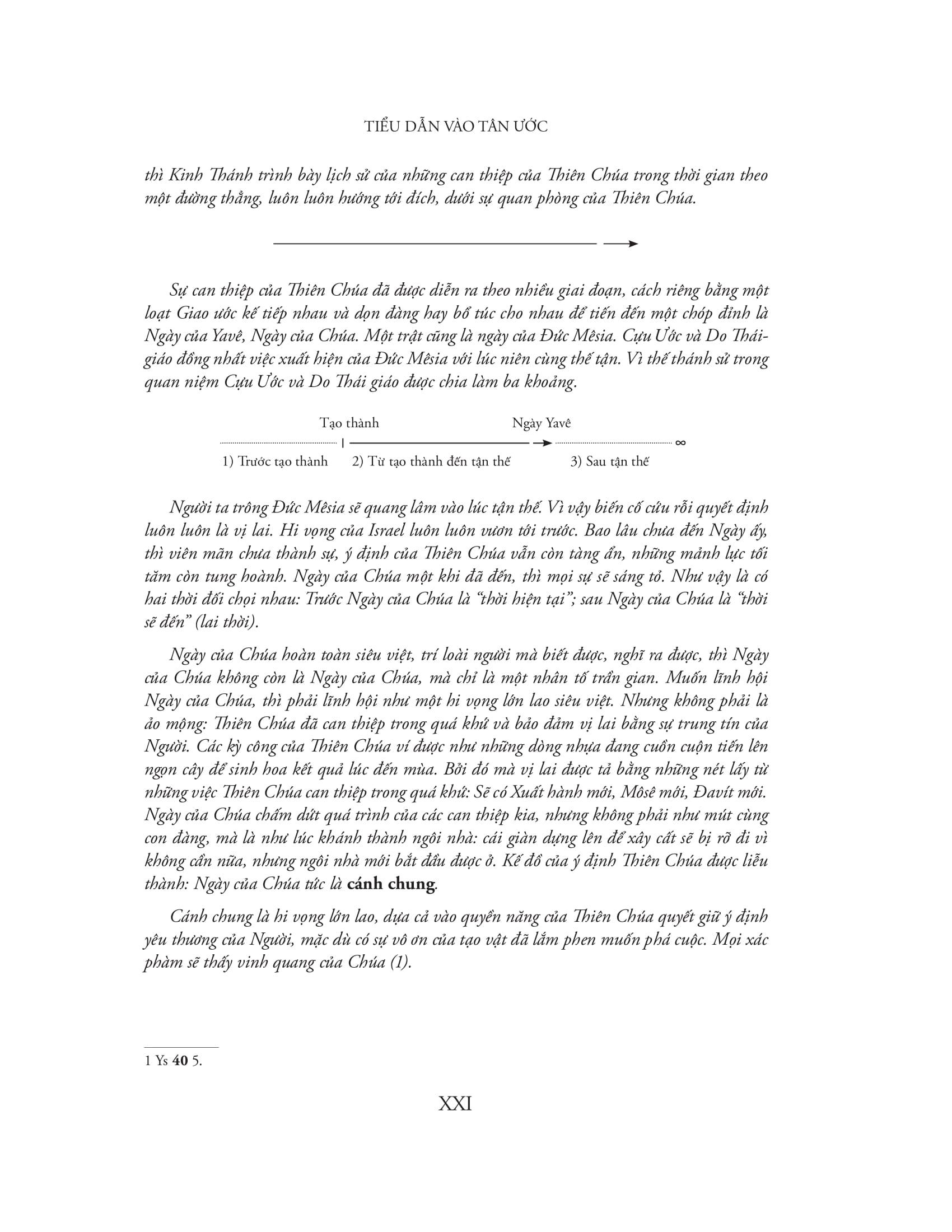 Cựu Ước là Giao ước cũ của người Hebrew (nay gọi là Do Thái) với Thiên Chúa, gồm 46 cuốn chia 4 phần, chứa đựng vũ trụ quan, nhân sinh quan cổ xưa nhất của nhân loại, do nhiều người viết suốt từ năm 1.200 đến năm 100 trước CN. Còn Tân Ước là Giao ước mới của các tín đồ Ki-tô giáo với Thiên Chúa, nguyên văn từ các cổ bản Hi Lạp, ra đời một thế kỷ sau khi xuất hiện đạo Ki-tô, trình bày cuộc đời và học thuyết của Chúa Yêsu.