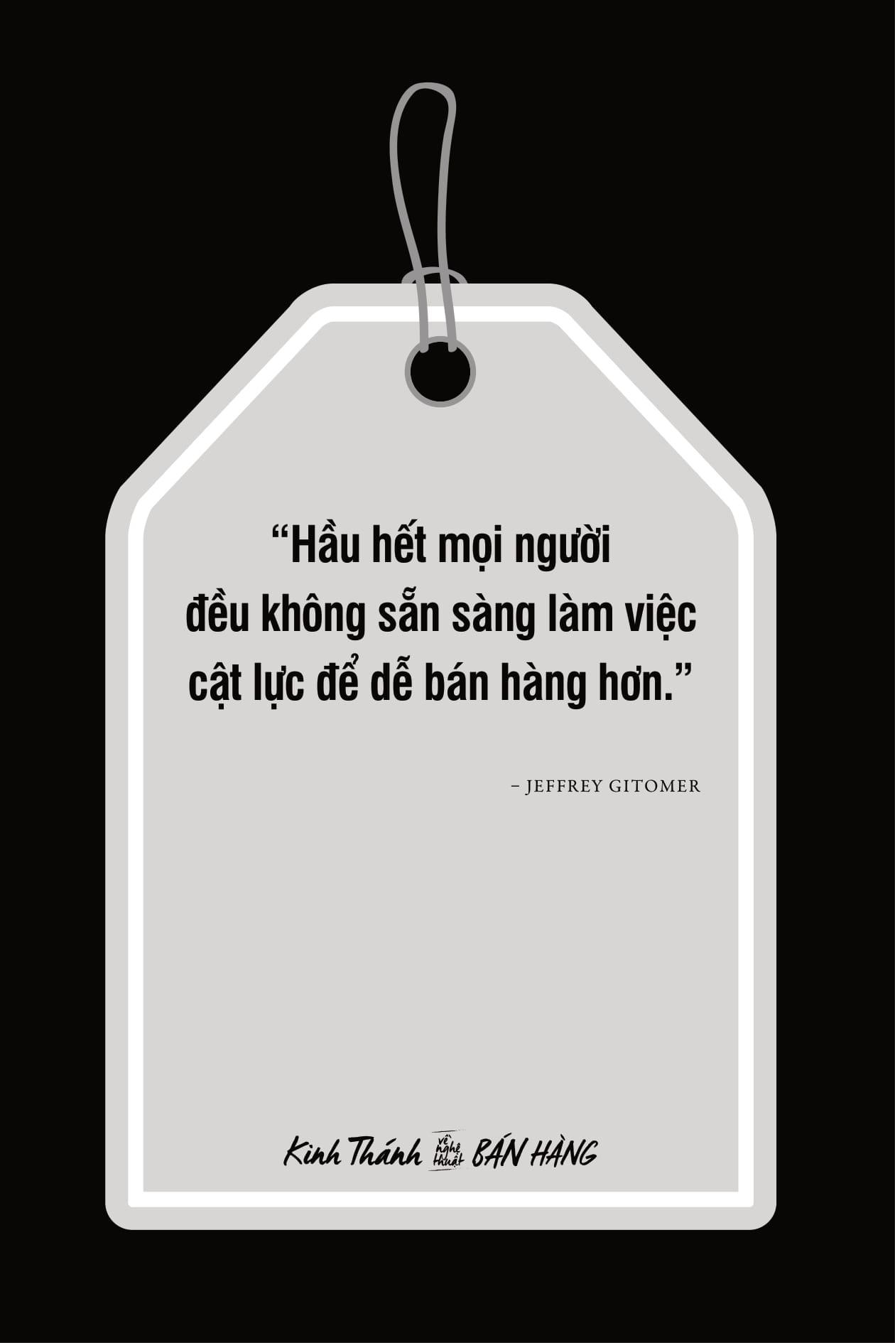 Jeffrey Gitomer được đánh giá là một trong những tác giả có ảnh hưởng lớn nhất trên thế giới về nghệ thuật bán hàng và dịch vụ khách hàng. Ông đã tổ chức hơn 150 chương trình đào tạo về bán hàng và chủ trì các cuộc gặp mặt khách hàng hằng năm cho các tập đoàn lớn như IBM, AT&T, Coca-Cola, Hilton Hotels, Inc. Manazine, Siemens, và Cintas.