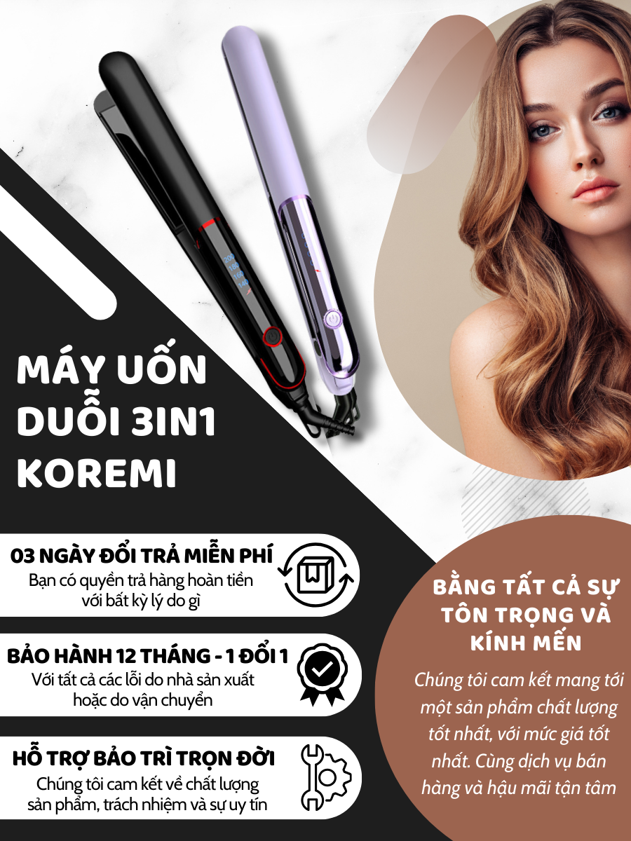 ✨KOREMI Máy uốn duỗi 3in1 Duỗi Thẳng, Uốn Xoăn, Làm Phồng Tóc X3 ion âm, Giúp tóc suôn mượt Hàng Chính Hãng