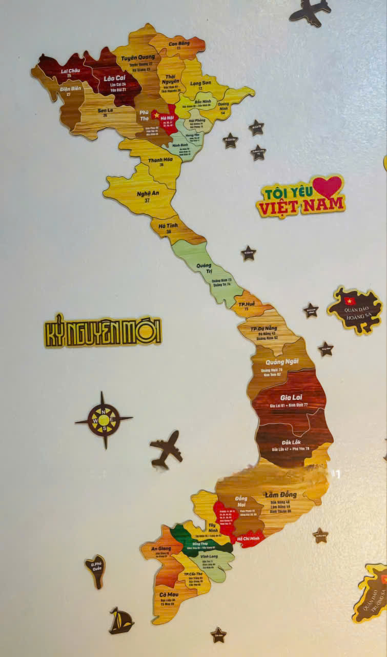 Bản đồ gỗ 34 tỉnh thành Việt Nam