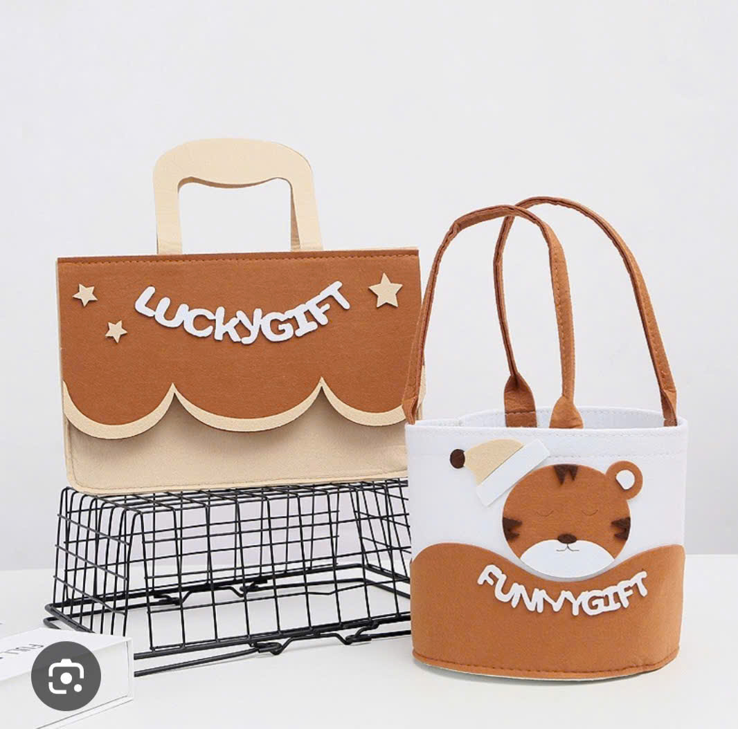 Mua tại TiktokCOMBO 2 TÚI VẢI DẠ SIÊU HOT – MÊ XỈU LUNNN Combo 2 Túi “Lucky Gift & Funny Gift” – Siêu Xinh Siêu Tiện Chất liệu: Vải nỉ dạ cao cấp, dày dặn, mềm mịn Màu sắc: Nâu be sang – dễ phối đồ Họa tiết: Hình tiểu hổ cute kèm chữ độc lạ, trendy KÍCH THƯỚC COMBO