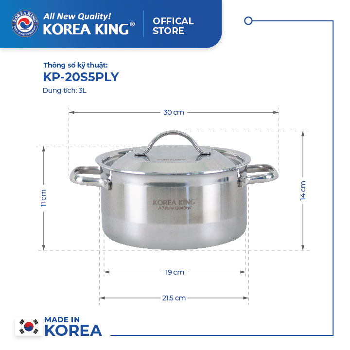 Đánh giá chi tiết KP-22S5PLY Nồi inox 5 lớp đáy liền Korea King (Nồi, nắp đều bằng inox, đường kính 22cm, dung tích 4L)-Hàng chính hãng Mô Tả Sản Phẩm NỒI INOX 5 LỚP