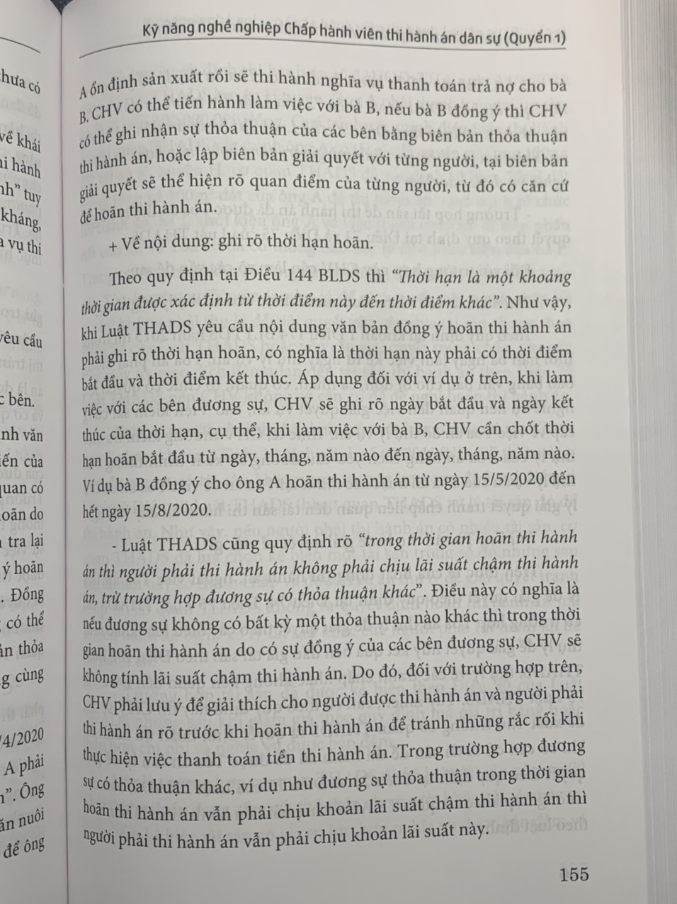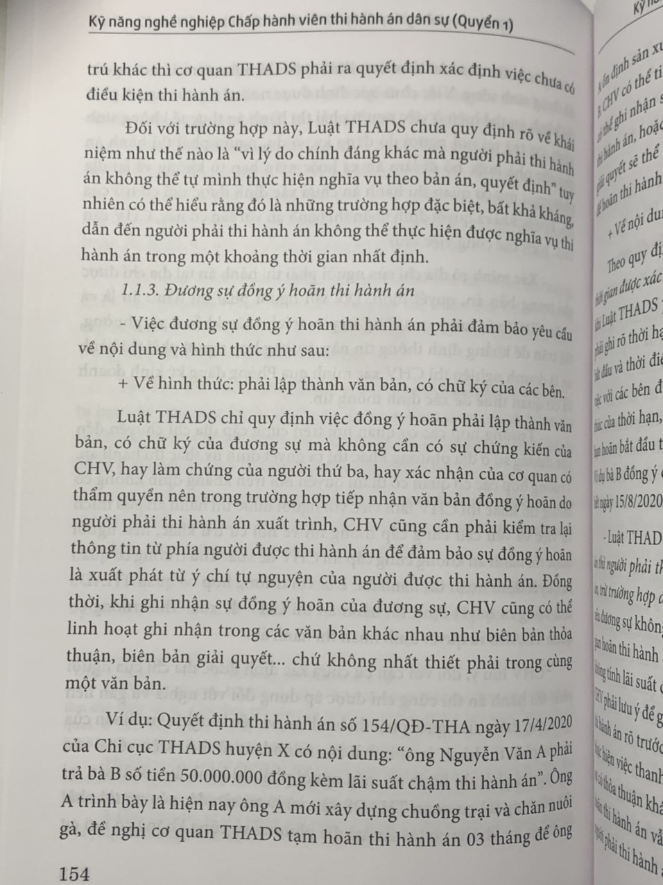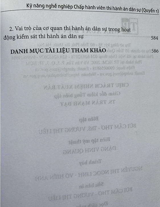Nhà Xuất bản Tư pháp và Nhóm tác giả: Ths. GV.Hoàng Thị Thanh Hoa, Ths. Hồ Quân Chính, TS. Nguyễn Văn Nghĩa xin trân trọng giới thiệu tới Quý bạn đọc cuốn sách mới “Kỹ năng nghề nghiệp Chấp hành viên Thi hành án Dân sự” Đây là cuốn sách chứa đựng những kỹ năng quan trọng và thiết yếu có giá trị tham khảo và ứng dụng cao đối với Chấp hành viên Thi hành án Dân sự trong quá trình tổ chức thi hành án. Cuốn sách dày 600 trang, kết cấu được xây dựng bám theo thủ tục THADS trên cơ sở cập nhật tất cả các văn bản pháp luật về THADS và các lĩnh vực pháp luật khác có liên quan được áp dụng đối với từng thủ tục một cách chi tiết giúp người đọc dễ dàng tra cứu. Những giá trị quý báu mà cuốn sách mang đến cho bạn đọc: ứng với mỗi tác nghiệp của Chấp hành viên đều được chỉ rõ cơ sở pháp lý; thủ tục thi hành án được phân tích chặt chẽ trên cơ sở quy định của pháp luật; cùng với những điểm nhấn cần lưu ý khi áp dụng pháp luật và những kinh nghiệm thực tiễn vào việc tổ chức thi hành án; trang bị những “kỹ năng mềm” cần thiết trong quá trình tổ chức thi hành án. Bên cạnh ý nghĩa là một cuốn sách “kỹ năng nghề” của Chấp hành viên, cuốn sách còn có giá trị tham khảo đối với những người làm công việc chuyên ngành Tư pháp như Kiểm sát viên, Thẩm phán, Thừa phát lại… và các học viên chuyên ngành Luật cũng như đông đảo Quý độc giả. Nhóm tác giả hy vọng cuốn sách “Kỹ năng nghề nghiệp Chấp hành viên thi hành án dân sự” sẽ là người bạn đồng hành tin cậy đối với đồng nghiệp công tác trong hệ thống Thi hành án dân sự và đông đảo Quý bạn đọc quan tâm! Giá sách là 260.000 đồng/cuốn.