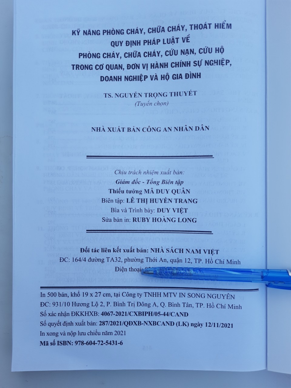 - Phần thứ tư: LUẬT QUẢN LÝ, SỬ DỤNG VŨ KHÍ, VẬT LIỆU NỔ VÀ CÔNG CỤ HỖ TRỢ - VĂN BẢN HƯỚNG DẪN THI HÀNH - Phần thứ năm: QUY ĐỊNH VỀ QUẢN LÝ, BẢO QUẢN, BẢO DƯỠNG PHƯƠNG TIỆN PHÒNG CHÁY, CHỮA CHÁY VÀ CỨU NẠN, CỨU HỘ - Phần thứ sáu: QUY ĐỊNH VỀ BẢO HIỂM CHÁY, NỔ BẮT BUỘC - Phần thứ bảy: KỸ NĂNG PHÒNG CHÁY, CHỮA CHÁY VÀ THOÁT HIỂM .../... Cảm ơn các bạn đã ghé thăm shop Nhà sách Nam Việt trên TIKI KỸ NĂNG PHÒNG CHÁY, CHỮA CHÁY, THOÁT HIỂM - QUY ĐỊNH PHÁP LUẬT VỀ PHÒNG CHÁY, CHỮA CHÁY, CỨU NẠN, CỨU HỘ TRONG CƠ QUAN, ĐƠN VỊ HÀNH CHÍNH SỰ NGHIỆP, DOANH NGHIỆP VÀ HỘ GIA ĐÌNH KỸ NĂNG PHÒNG CHÁY, CHỮA CHÁY, THOÁT HIỂM - QUY ĐỊNH PHÁP LUẬT VỀ PHÒNG CHÁY, CHỮA CHÁY, CỨU NẠN, CỨU HỘ TRONG CƠ QUAN, ĐƠN VỊ HÀNH CHÍNH SỰ NGHIỆP, DOANH NGHIỆP VÀ HỘ GIA ĐÌNH