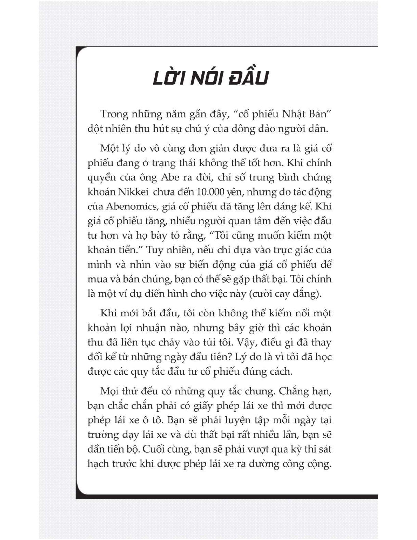 Cuốn sách giải thích mọi thứ - từ những điều cơ bản về lựa chọn tài khoản, lựa chọn mã cổ phiếu phù hợp đến những điểm then chốt khi tiến hành phân tích thị trường. Bạn sẽ được hướng dẫn về ý nghĩa của các chỉ số quan trọng, cách thực hiện phân tích cơ bản, phân tích kỹ thuật, đọc đồ thị hình nến… để tiến hành mua và bán cổ phiếu một cách kịp thời và hiệu quả, nhằm tối ưu lợi nhuận cũng như hạn chế tối đa các rủi ro trên thị trường.