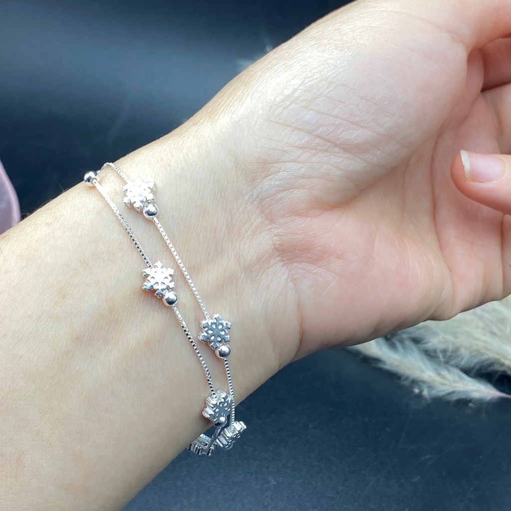 ✨Lắc Tay Bạc 925 Bông Tuyết Dây Kép BẠC HIỂU MINH LTU655