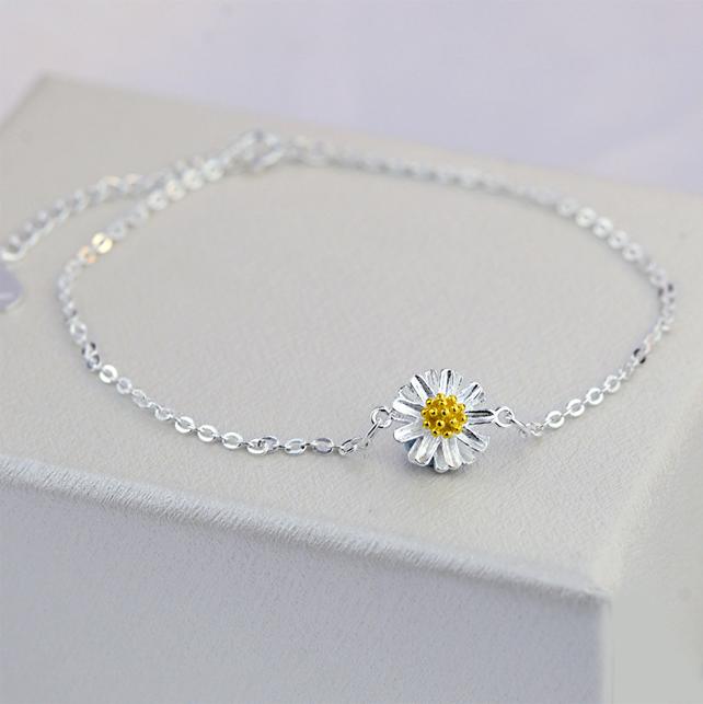 Lắc Tay Bạc 925 - Vòng Đeo Tay Nữ Cao Cấp Hoa Cúc Họa Mi - Shop Khăn Phụ Kiện - KhanPhuKien.com