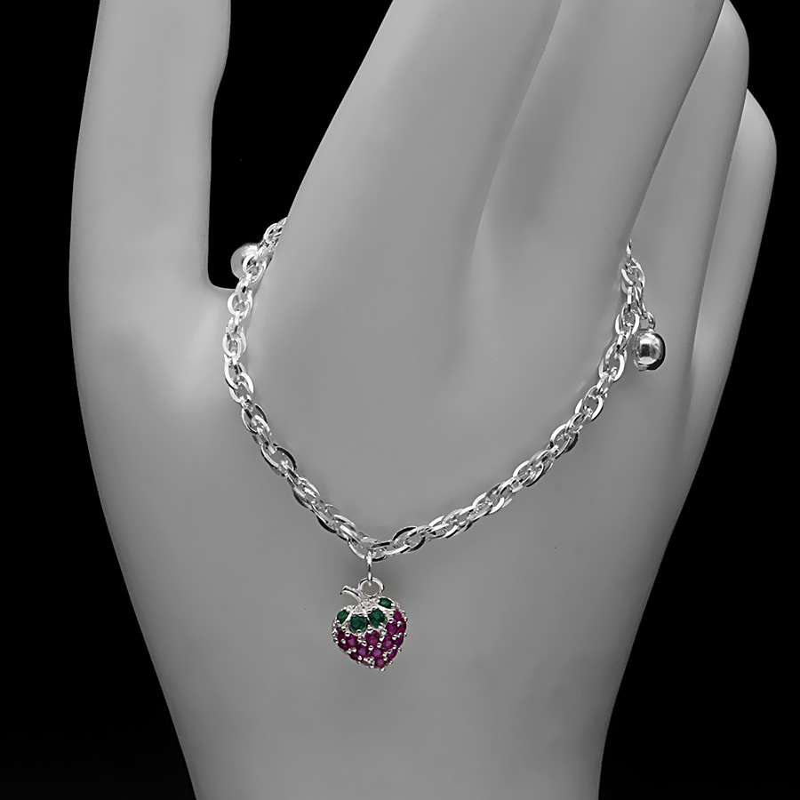 ✨Lắc Tay Lắc Chân Trẻ Em Bạc Hiểu Minh LTE101 quả dâu tây