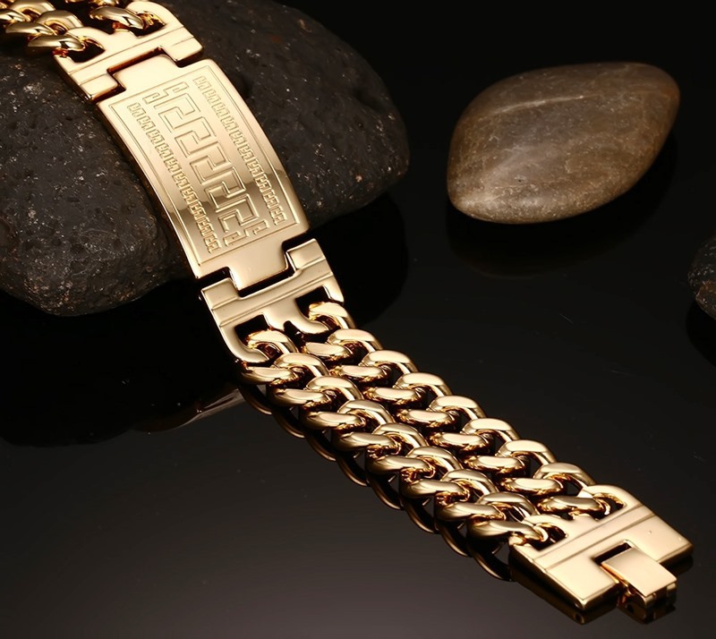 Mua tại TiktokLắc tay nam thời trang phong cách thể hiện cá tính và đẳng cấp của bạn. Dây đeo xích đôi mềm mại, thoái mái khi sử dụng Chất liệu: Thép titan siêu bền mạ 24k Sở hữu công nghệ mạ điện mang lại độ bền cao cho sản phẩm Chiều rộng mặt dây 23mm kết hợp độ dày 3mm hoa văn được đúc tinh xảo, sắc nét Chu vi tối đa của sản phẩm dài 23cm có thể thu ngắn khi có nhu cầu Khóa cái bấm linh động dễ dàng sử dụng