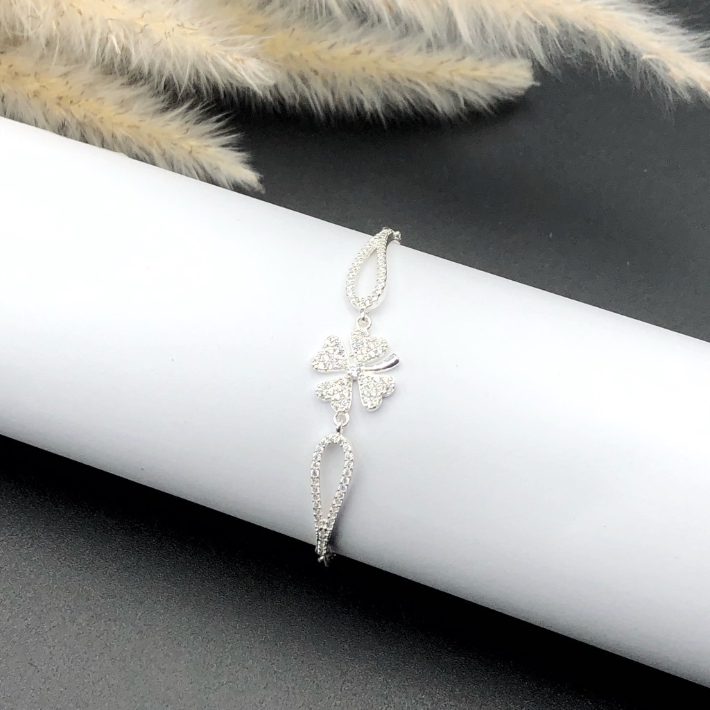 Vòng tay nữ bạc (lắc tay nữ bạc) được làm hoàn toàn từ bạc 925 sáng bóng và rất đẹp, đính đá nhân tạo cao cấp sáng bền đẹp.