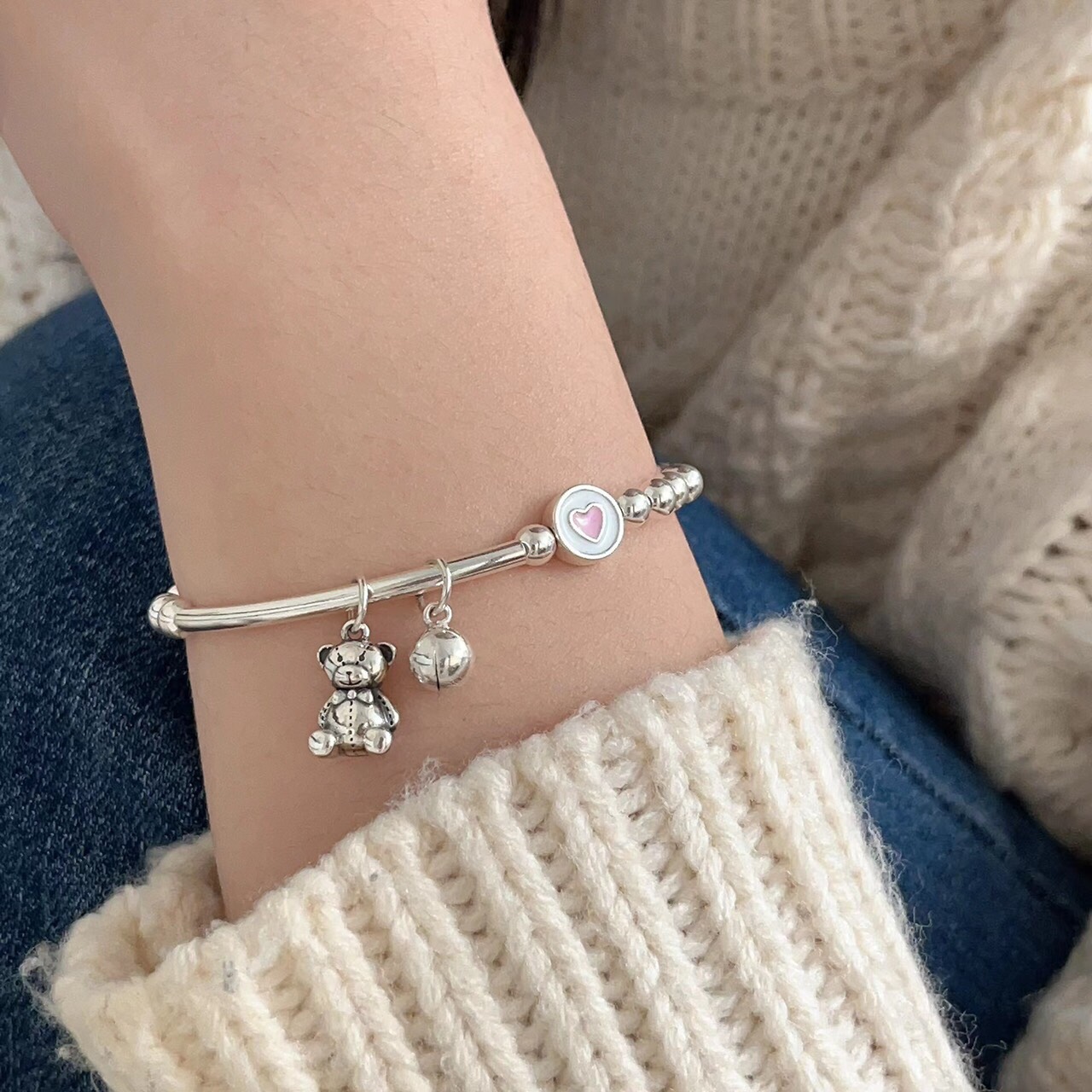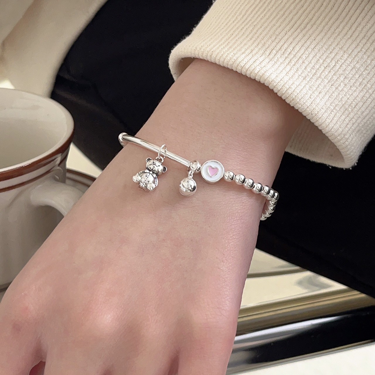 ✨Lắc Tay Vòng Tay Nữ Bạc 925 Bi Trơn Mix Với Gấu Dễ Thương Bạc Hiểu Minh LTU574
