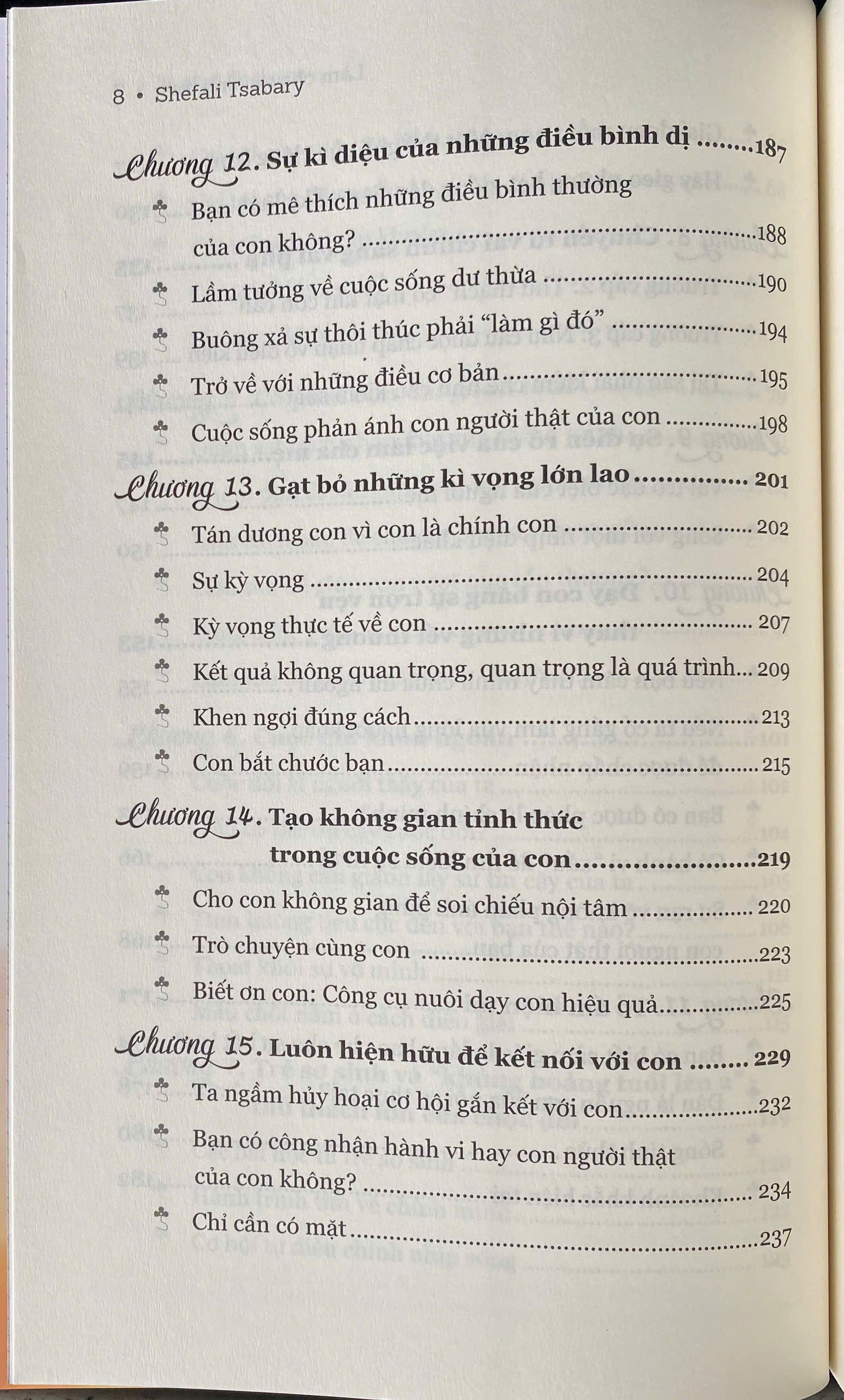 Tiến sĩ Shefali Tsabary nhận bằng tiến sĩ chuyên ngành Tâm lý lâm sàng, Đại học Columbia, New York. Bà được tiếp cận với quan điểm phương Đông từ rất sớm và lồng ghép quan điểm đó vào tâm lý học phương Tây. Sự lồng ghép giao thoa giữa phương Đông và phương Tây giúp bà tiếp cận với độc giả toàn cầu. Khả năng thu hút độc giả thiên về tâm lý và độc giả thiên về ý thức đã giúp bà trở thành chuyên gia hàng đầu trong lĩnh vực nuôi dạy con.
