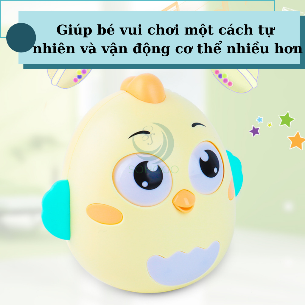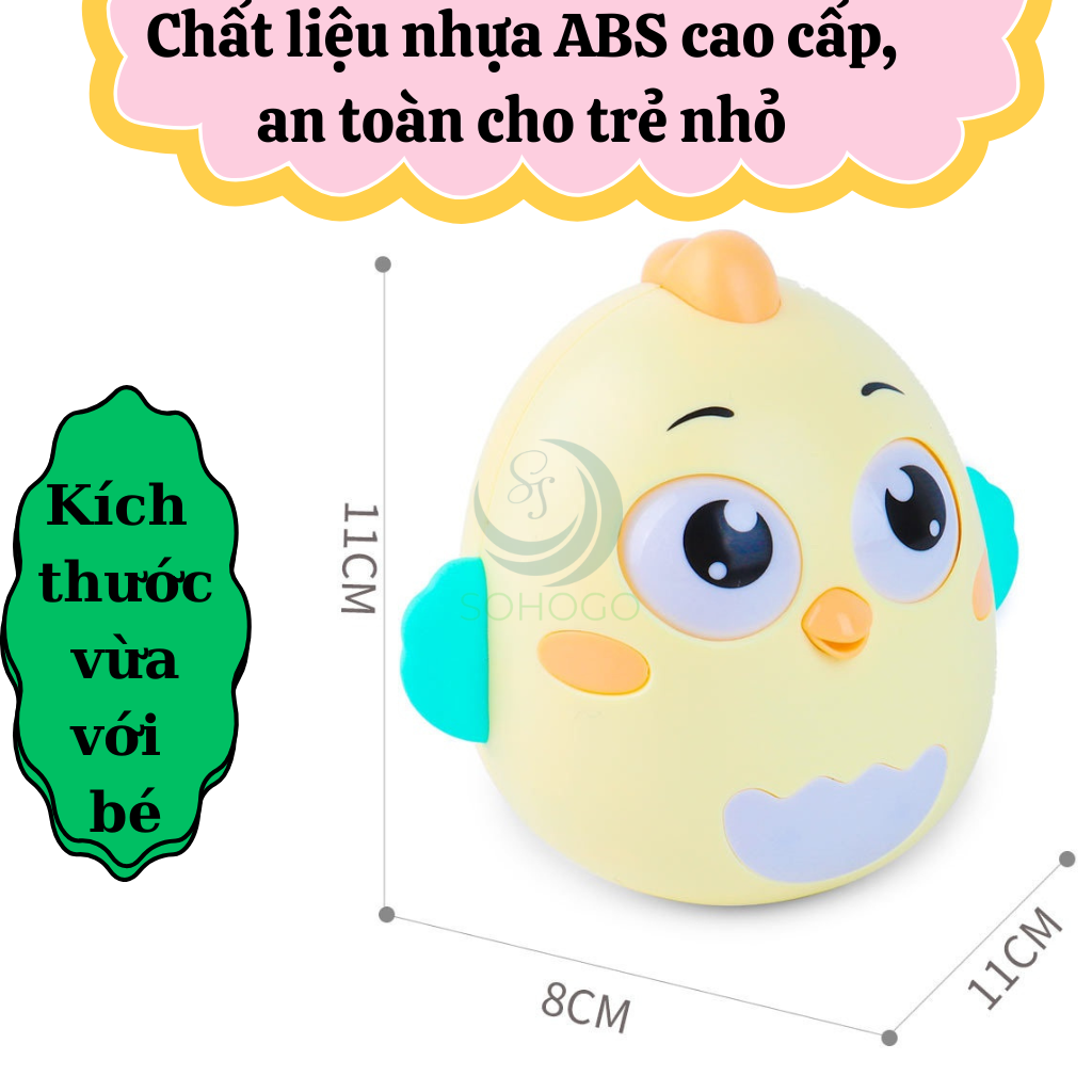 - Gà lật đật tự động bật dậy sau khi bị đẩy, giúp bé phát triển kỹ năng vận động và phản xạ nhanh nhạy.