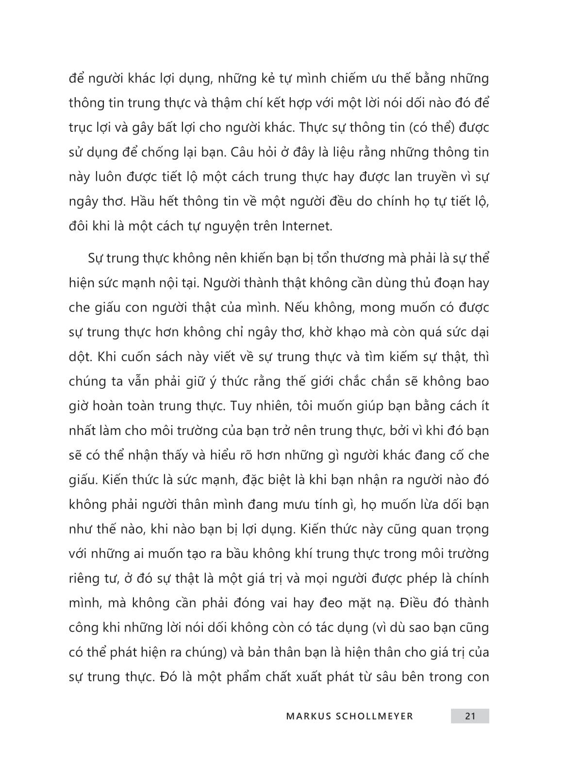 Dù bảo vệ sự thật không dễ dàng chút nào vì nói dối thuận tiện, dễ làm mẫu và mang lại lợi ích tức thời cho người nói, thì bạn vẫn nên hiểu rằng sự dối trá sẽ không giúp bạn đi xa. Cứ lạm dụng những lời nói dối vì ít để lại hậu quả thì về sau, dù bạn có nói thật cũng chẳng mấy ai tin. Đó là lý do chúng ta nên lựa chọn đứng về phía sự thật, LẬT TẨY KẺ NÓI DỐI, nhìn-thấu-điều-kẻ-khác-đang-che-giấu để biến môi trường xung quanh thành một nơi an toàn mà chúng ta được là chính m.ình.