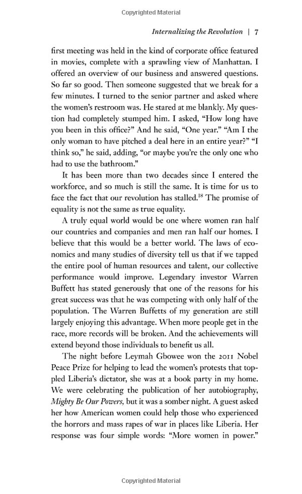 Thirty years after women became 50 percent of the college graduates in the United States, men still hold the vast majority of leadership positions in government and industry. This means that women’s voices are still not heard equally in the decisions that most affect our lives. In Lean In, Sheryl Sandberg examines why women’s progress in achieving leadership roles has stalled, explains the root causes, and offers compelling, commonsense solutions that can empower women to achieve their full potential.