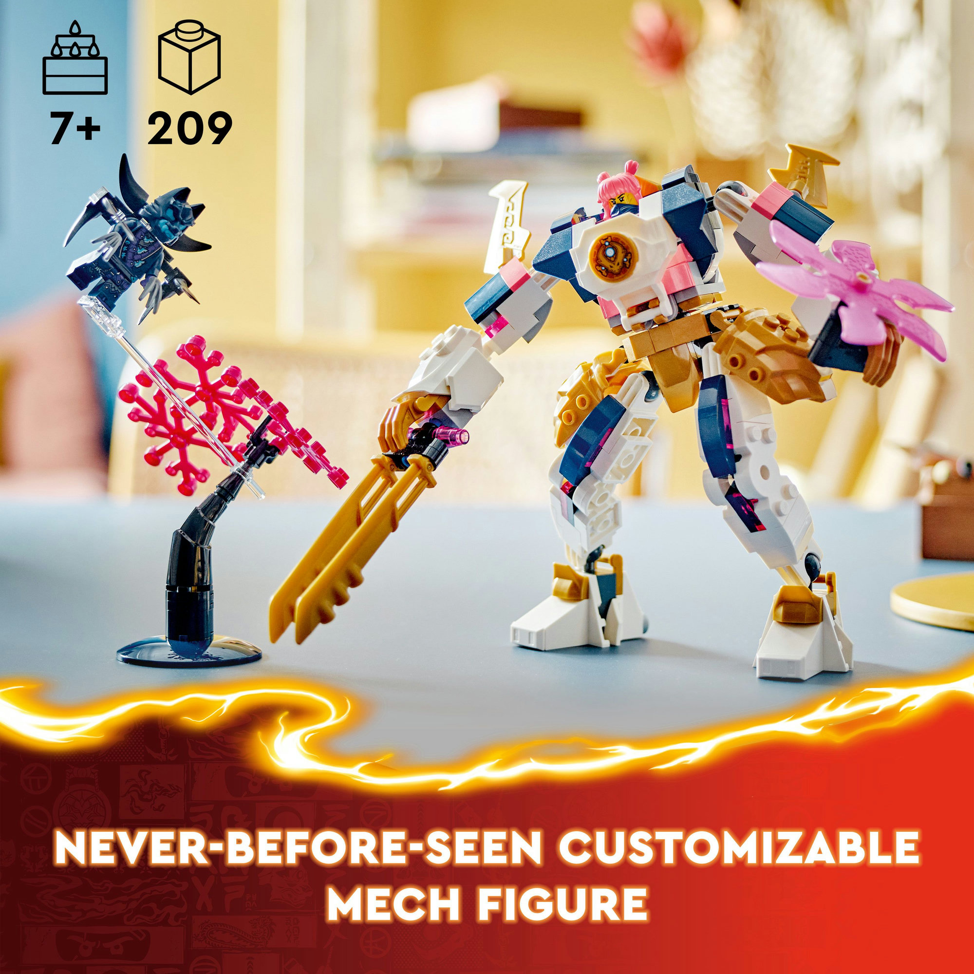 • Xây dựng những bộ chiến giáp của riêng bạn – Những bé hâm mộ NINJAGO có thể tận hưởng hàng giờ vui vẻ sáng tạo khi kết hợp các bộ phận từ những bộ đồ chơi khác nhau (được bán riêng) để tạo ra những bộ siêu chiến giáp NINJAGO của riêng mình
