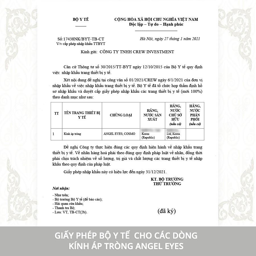 Lens trong suốt 1 ngày Angel Eyes rất phù hợp với các bạn học sinh, sinh viên. Thời hạn sử dụng 1 ngày, giá 80.000 VNĐ. Sản phẩm đã được Bộ Y Tế cấp phép lưu hành tự do và được nhiều chuyên gia nhãn khoa khuyên dùng.