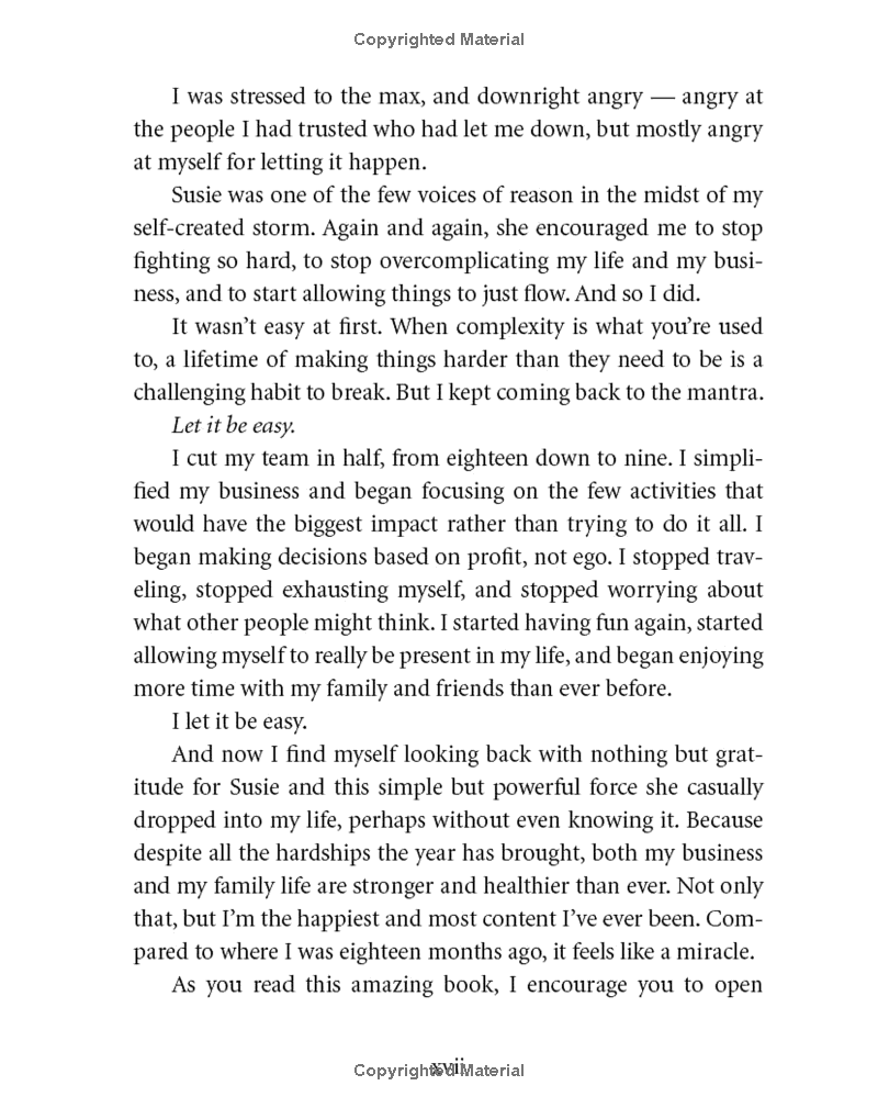 As readers turn these pages, they may hear echoes of A Course in Miracles, Abraham-Hicks, Byron Katie, Louise Hay, or Glennon Doyle, but what they are getting is a conversation with a new friend who has been there, done that, and knows the drill. Susie Moore's writing amuses and inspires. Each brief chapter delivers a poignant or funny message encouraging readers to become more free and powerful. Her stories about everyday interactions, such as dinner at a chichi restaurant or lunch with a friend, contain life lessons that don't deny the reality of suffering but pivot toward a life-changing way of processing pain, grief, loss, and anxiety. Moore ses forgiveness, family, friendship, health, love, work, and money in a wise but conversational tone that allows for the reader's own insights and epiphanies to take hold. The results make everything from deciding what to cook for dinner to having more intimacy with a spouse, recovering from a painful past, or disconnecting from a toxic friend not only possible but easy. Moore's unique take on life and how to live it is destined for bedside tables and morning meditations for anyone striving to let go of the struggle and open to the real power and peace we all possess.
