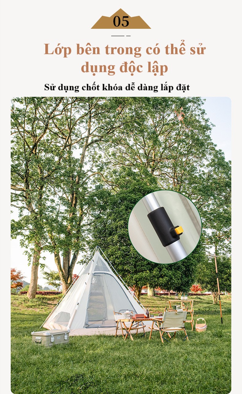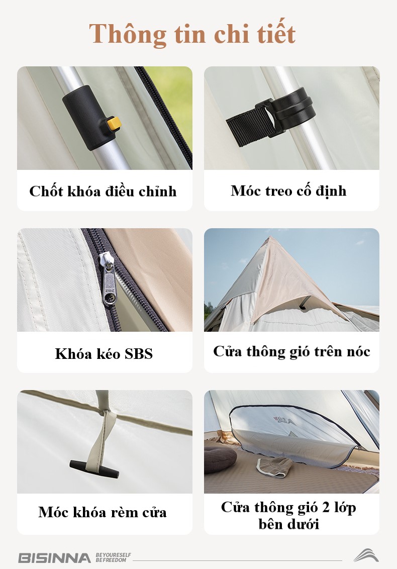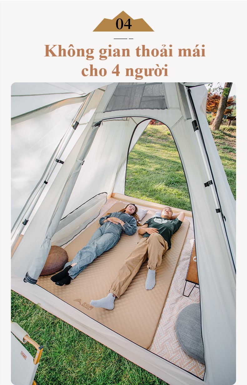 Giới Thiệu Về Sản Phẩm: - Vải lều chống nước cực tốt giúp bạn không bị ướt bởi cơn mưa, sương mù và bảo vệ bạn khỏi côn trùng cắn. Khung lều làm từ sợi