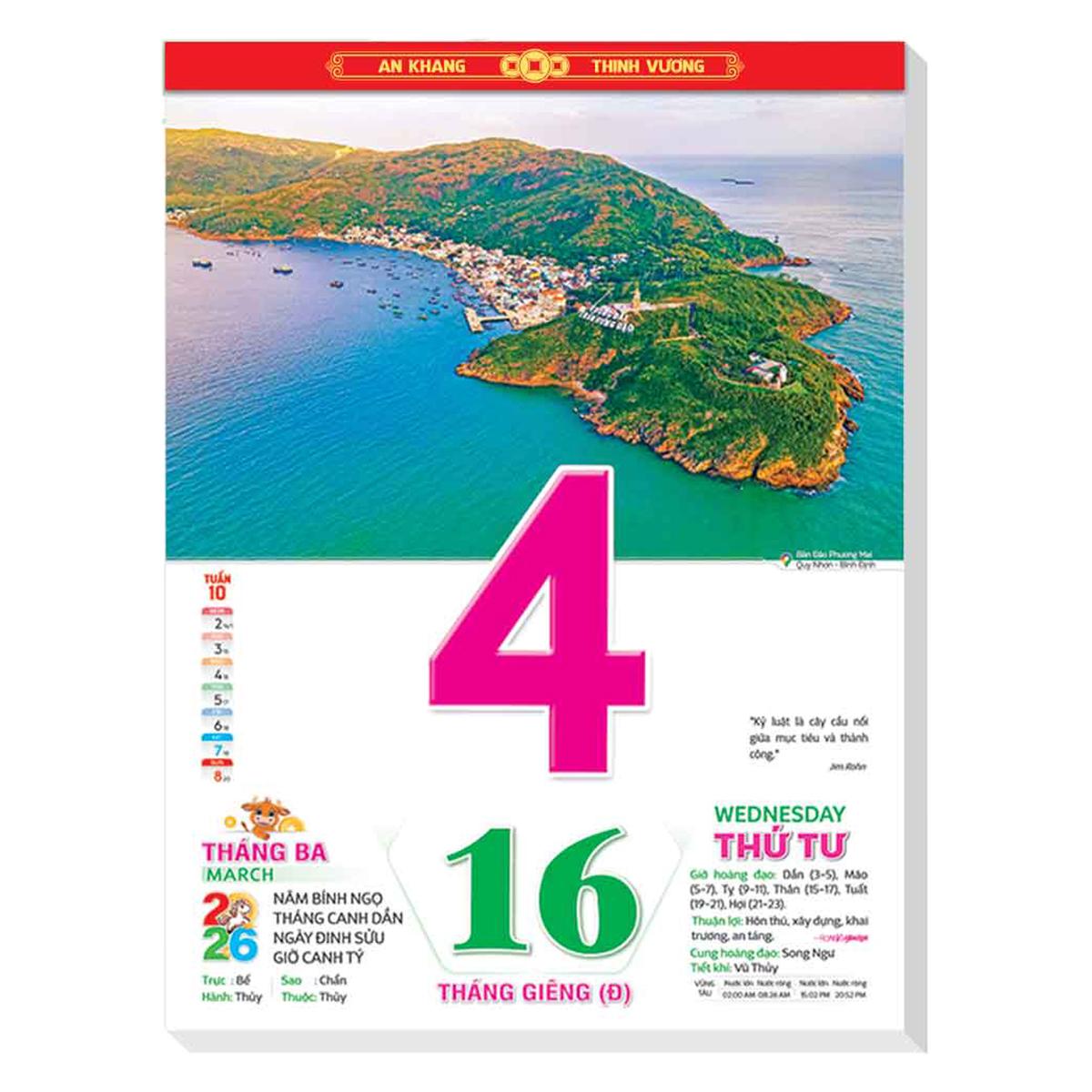 Lịch Bloc Cực Đại 2026 - Việt Nam Quê Hương Tôi - Thành Công - Đại Việt Á DVA05 - Chữ Phúc - Lịch bloc giúp bạn nắm rõ ngày dương, ngày âm, tiết khí,