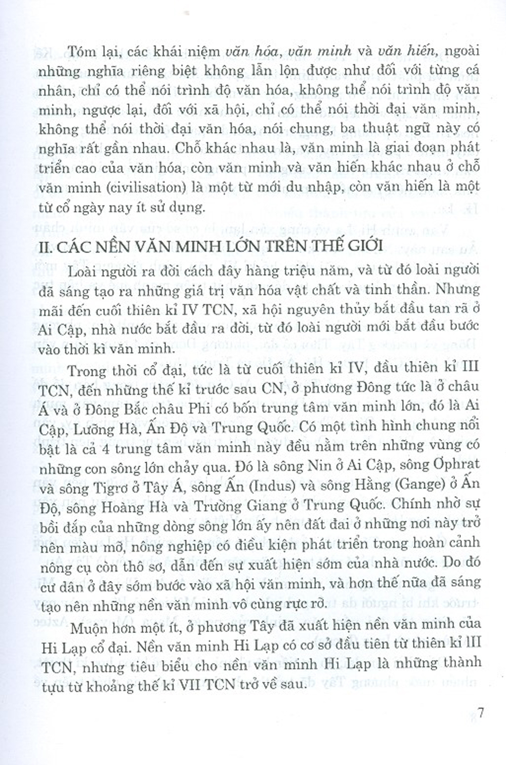 Mua tại TiktokNội dung của mỗi chương đề cập đến những điều kiện hình thành nền văn minh, giới thiệu trình độ phát triển kinh tế và phân hoá xã hội, sơ lược lịch sử thành lập và phân hoá xã hội, sơ lược lịch sử thành lập và cấu trúc của nhà nước, những học thuyết chính trị, quan điểm triết học và các tôn giáo lớn cùng những thành tựu khoa học tự nhiên, kỹ thuật và văn học nghệ thuật.