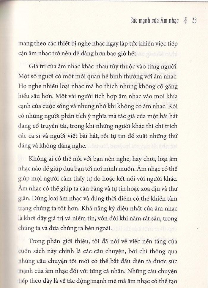 Mua tại TiktokMột cách bản năng, chúng ta đều biết âm nhạc có sức ảnh hưởng rất lớn, ở nó có gì đó thật kỳ diệu. Khi nghe bài hát đúng tâm trạng, bạn sẽ khóc hoặc cười, gõ nhịp chân hoặc chỉ thở ra mãn nguyện “à”. Âm nhạc kết nối tới thứ gì đó sâu thẳm trong chúng ta, thứ gì đó liên quan đến khả năng sáng tạo ra mọi điều ta khao khát. Tôi đang không chỉ nói về hội họa, âm nhạc hay văn chương, mà mọi sự sáng tạo của cuộc sống – làm ra một chiếc bánh hoặc dọn sạch một khu vực trong nhà bạn, hay thậm chí chỉ là tạo ra một cảm xúc, tốt hoặc xấu. Âm nhạc mang đến cho chúng ta một đường dẫn trực tiếp tới sức mạnh đó và giúp nó nở rộ theo cách gần như không thể lý giải được. Tôi đã nghe nói về thuật ngữ “liệu pháp âm nhạc” cách đây ít lâu, nhưng chưa bao giờ thực sự chú ý, thành thật mà nói, thậm chí còn gạt nó đi vì từ “liệu pháp” (làm thế nào một thứ tuyệt vời như âm nhạc lại bị quy thành liệu pháp – như phân tâm học hay gì đó). Sau đấy, tôi đã gặp Jennifer Buchanan. Cô là một chuyên gia trị liệu âm nhạc được đào tạo, nhưng có điều gì đó ở Jennifer khiến tôi ngay lập tức nghiêm túc chú ý. Trước cô, chưa từng có ai nói với tôi những điều như vậy về âm nhạc. Gần với những điều “không thể lý giải nổi” mà tôi luôn biết có tồn tại trong âm nhạc nhưng chưa bao giờ thật sự nắm bắt được. Rõ ràng là Jennifer ấp ủ một cuốn sách và nóng lòng được xuất bản nó. Tôi chưa đọc cuốn sách nào về “liệu pháp âm nhạc”, nhưng tôi có thể nói rằng cô ấy đang cố gắng mang đến thứ gì đó chưa từng được trình bày đầy đủ trên giấy. Tôi nói với cô ấy rằng khoa học về âm nhạc không phải là điều khiến chủ đề này hấp dẫn tôi. Khi cô ấy bắt đầu kể cho tôi nghe các câu chuyện của mình, tôi biết rằng những câu chuyện đó đã hàm chứa câu trả lời: đó là những gì âm nhạc có thể làm với một người đang cần được cổ vũ, giảm căng thẳng, hay thậm chí đang tìm cách kết nối trở lại với thế giới. Bốn năm đã trôi qua kể từ lần đầu tiên tôi gặp Jennifer và hai năm kể từ khi chúng tôi xuất bản ấn phẩm đầu tiên của cuốn sách này. Sau khi đọc một số bản nháp sơ bộ, tôi đã gợi ý cho cô về cách làm nổi bật thông điệp. Sau khi đọc cuốn sách của cô, tôi đã suy nghĩ rất nhiều về âm nhạc và việc không hiểu sao cuộc sống của tôi lại thiếu đi âm nhạc nhiều đến thế. Tôi yêu âm nhạc, tôi lớn lên với việc chơi piano. Tôi có thể chọn bất kỳ nhạc cụ nào, trừ đàn guitar vì một vài lý do, và học chơi khá nhanh. Nhưng vài năm trước, tôi không còn nghe nhạc thường xuyên nữa. Tôi không còn bật radio trong xe hơi vì thích sự im lặng. Là một tác giả, đôi khi tôi tập trung hoàn toàn vào những suy nghĩ của mình. Tôi nói về việc “nghe” một cuốn sách trong đầu trước khi viết nó ra, vì vậy có thể nói rằng tôi “viết” liên tục, bất kể tôi đang làm gì khác. Nhưng kể từ khi đọc bản nháp đầu tiên của cuốn sách này, tôi đã có chút áy náy với ý nghĩ mình không còn nghe nhạc nhiều như trước nữa, và chắc chắn tôi đã không nghe bất cứ thứ gì có thể chắp cánh cho mình. Tôi có một cô con gái đang học tiểu học nên chúng tôi thường xuyên nghe nhạc pop, nhưng các thể loại khác thì không nhiều lắm. Rồi một buổi sáng Chủ nhật, tôi từ cửa hàng tạp hóa trở về nhà. Người cha yêu dấu của tôi vừa qua đời khoảng ba tuần trước đó; tôi ngập ngụa trong công việc, và không hề vui vẻ – tôi chỉ làm việc nhà, đảm bảo gia đình mình được chăm sóc đầy đủ. Khi bước vào cửa, tôi nghe thấy chất giọng tuyệt vời của James Taylor đang hát “Sweet Baby James”. Chúng tôi có một cái máy nghe nhạc nhỏ trong bếp, không phải là đồ xịn gì và chồng tôi đã bật đĩa Những bài hát hay nhất của James Taylor mà anh tìm được tại một cửa hàng từ thiện ngày hôm trước. Khi nghe những giai điệu của bài hát đó, tôi đã suýt khóc. Đó là thứ hay nhất mà tôi được nghe trong suốt một thời gian dài. Vì bất cứ lý do gì, buổi sáng hôm đó, giai điệu ấy chính là âm nhạc “của tôi”, và thông điệp từ cuốn sách của Jennifer bừng lên trong tôi. Khi tôi cần một thứ gì đó êm dịu dễ chịu, thì nó đây: James Taylor đang hát cho tâm hồn tôi. Ngay lập tức tôi cảm thấy thư giãn hơn. Tôi bỏ túi đồ tạp hóa trên tay xuống và bắt chồng khiêu vũ với mình ngay giữa bếp. Sau suốt một thời gian dài tôi mới cảm thấy kết nối với cuộc sống nhiều đến thế. Đó là một kỷ niệm tôi sẽ trân trọng. “Ứng dụng âm nhạc để thay đổi cuộc sống” là cuốn sách về việc sử dụng âm nhạc có chủ đích. Bạn sẽ thấy rõ điều này hơn trong các trang tiếp theo, nhưng tôi chắc chắn, theo bản năng, bạn vốn đã biết điều đó nghĩa là gì rồi. Đó là việc tìm kiếm âm nhạc phù hợp cho bất kỳ tình huống nà
