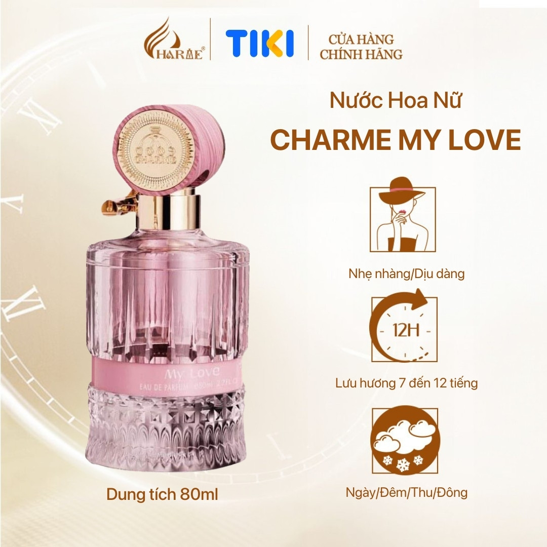 - Hương thơm của Nước hoa nữ cao cấp Charme My Love có thể khiến bạn “kén chọn”. Thế nhưng, đúng với tình yêu của đời mình, chọn thì khó, nhưng đã chọn rồi thì nhất định sẽ yêu thương dài lâu.
