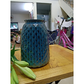 Sản phẩm là 1 trong những sản phẩm được sản xuất hoàn toàn bằng người thợ tài hoa,với nhiệt đô nung cao có sự điều chỉnh mang đến màu men đặc trưng không sản phẩm nào giống được tạo nên màu vân đá bóng tạo chiếc lọ một vẻ đẹp hài hòa mà không kém phần sang trọng.