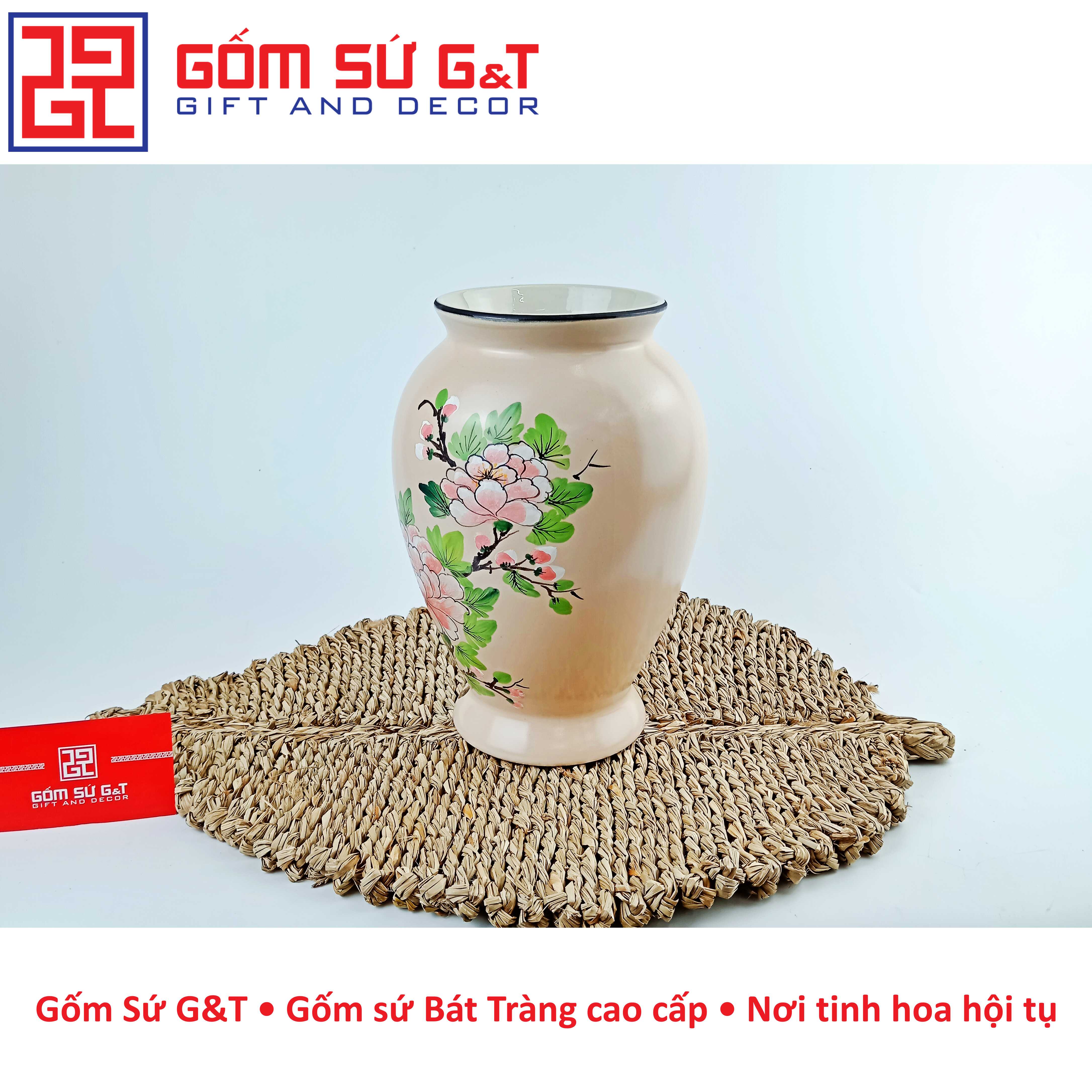 Bình hoa cao cấp Bát Tràng, hàng chuẩn loại 1, dáng chum họa tiết đắp nổi được thực hiện thủ công 100% bởi bàn tay lành nghề của các nghệ nhân làng nghề. Sản phẩm