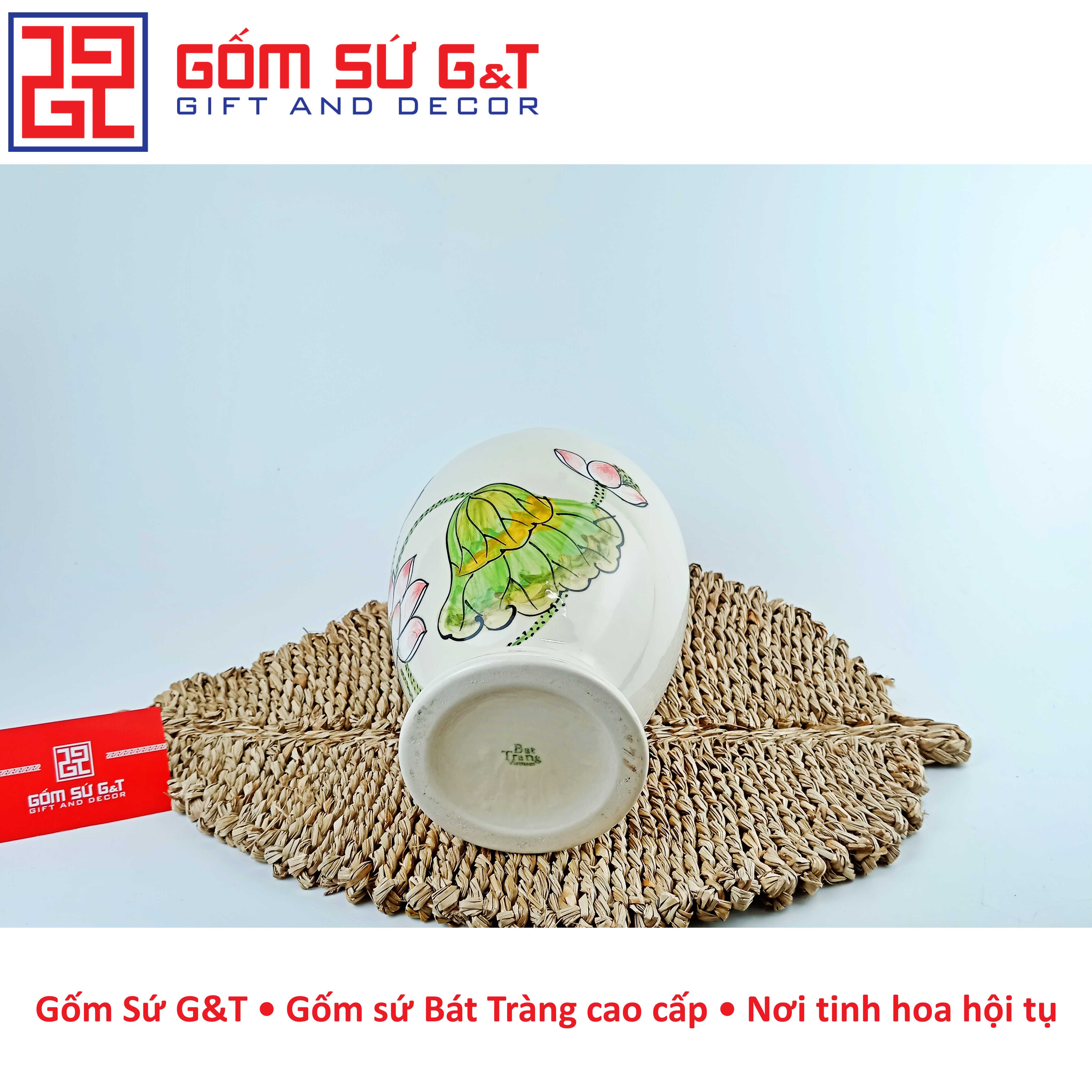 Lọ hoa dáng đùi dế vẽ sen hồng Bát Tràng là một sản phẩm thủ công độc đáo, được làm từ chất liệu gốm sứ cao cấp. Với thiết kế tinh tế và đa dạng về kiểu dáng, lọ hoa trang trí của gốm Bát Tràng đã trở thành một trong những sản phẩm trang trí nội thất được ưa chuộng nhất hiện nay.